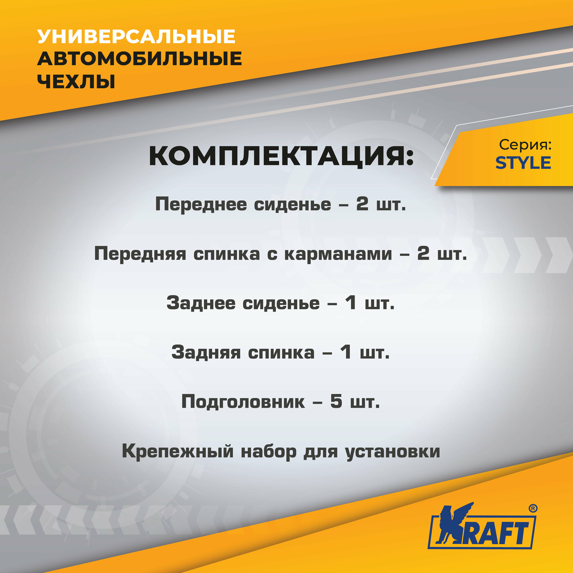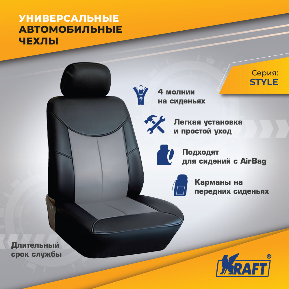 Чехлы универсальные на автомобильные сиденья, комплект "STYLE", экокожа, черно-серые информация: