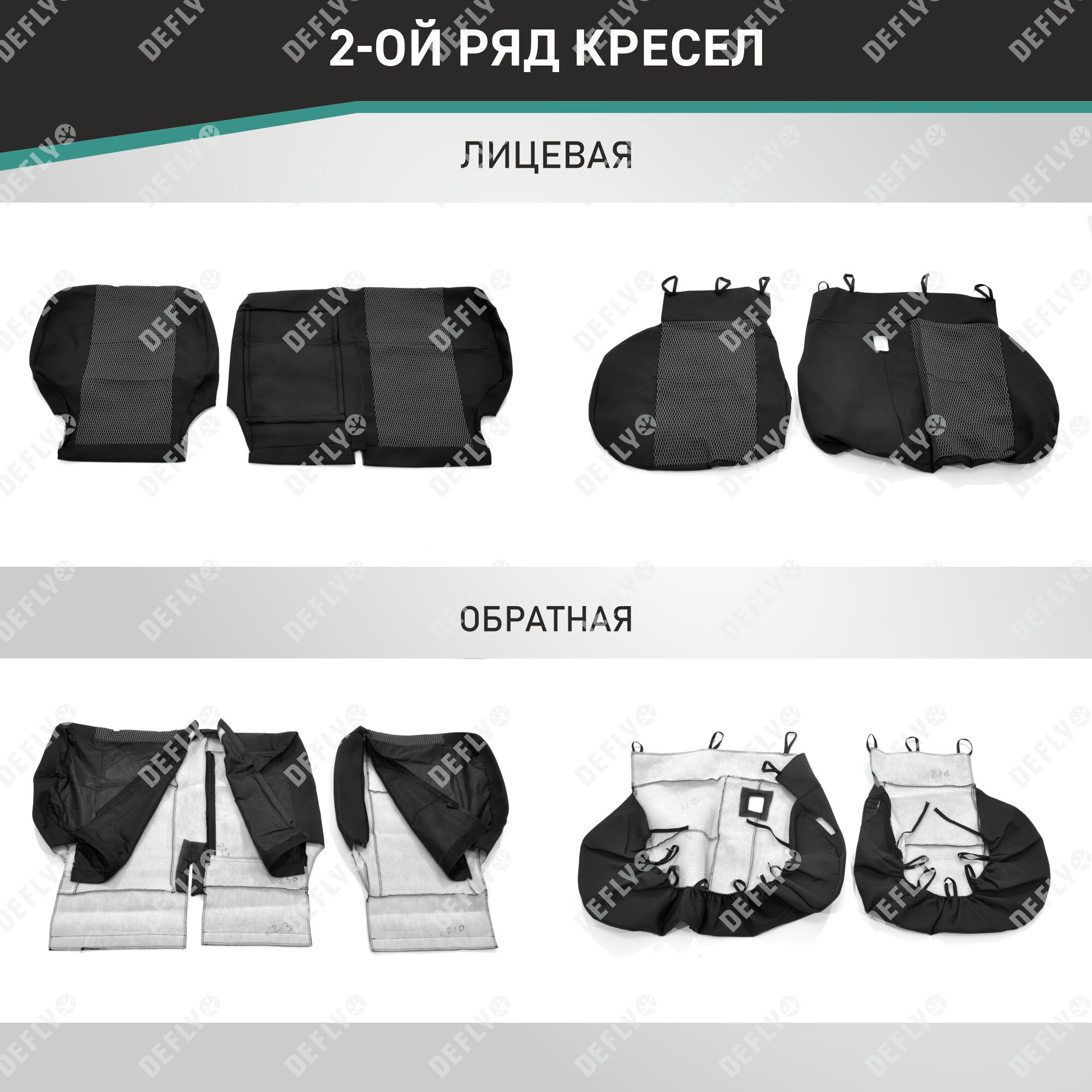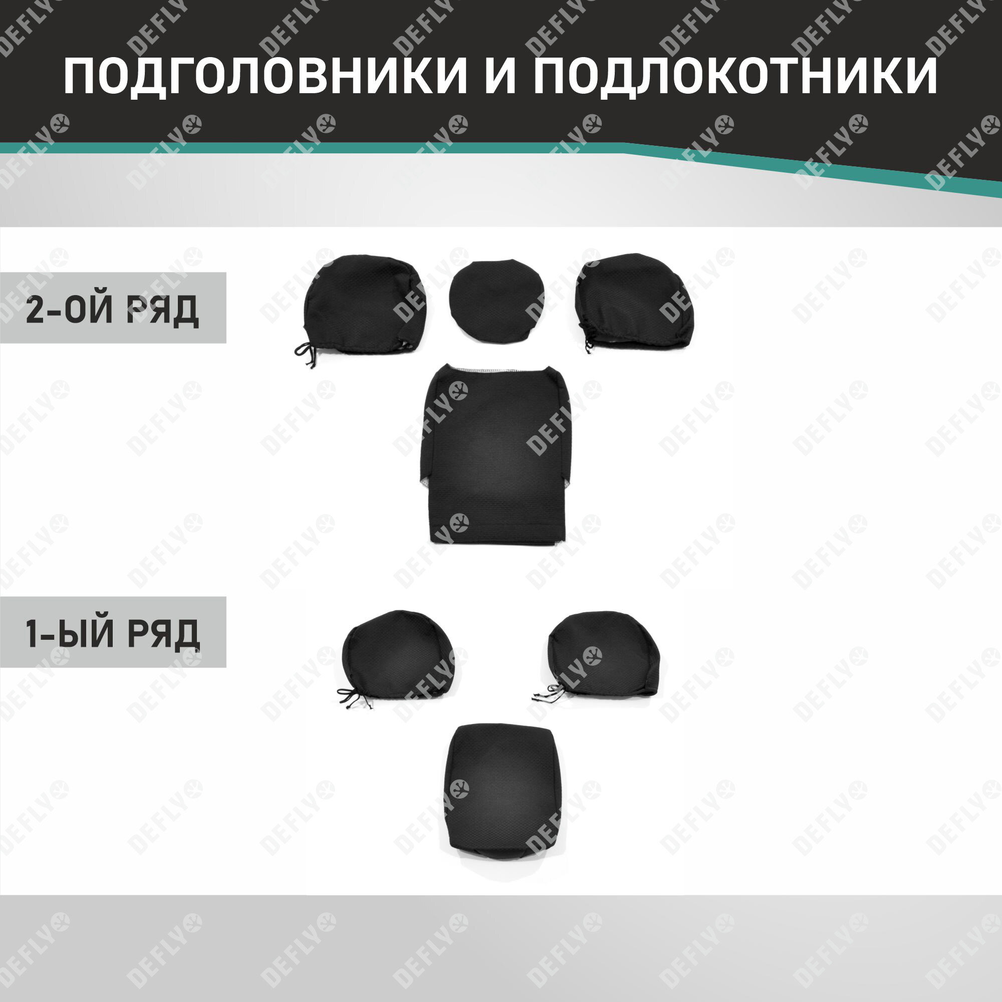 | Подробная комплектация | Передний ряд: 1. Спинка левая - 1 шт. 2. Спинка правая - 1 шт. 3. Сиденье - 2 шт. 4. Подголовник - 2 шт. Задний ряд:. 5. Спинка малая - 1 шт. 6. Спинка большая - 1 шт. 7. Сиденье малое - 1 шт. 8. Сиденье большое - 1 шт. 9. Подголовник - 2 шт. 10. Подголовник центральный - 1 шт. Всего изделий: 13 шт. |