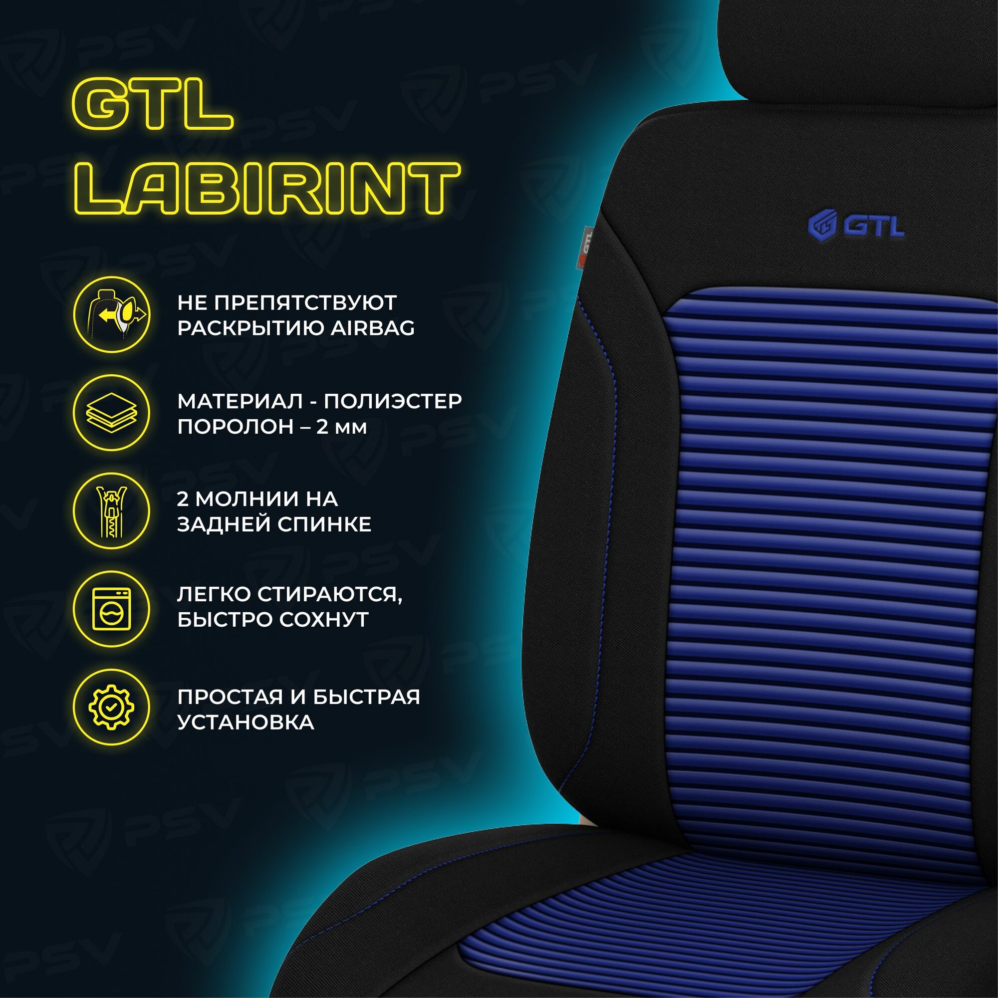 Чехлы в машину универсальные GTL Labirint (Синий), полиэстер , на весь салон информация: