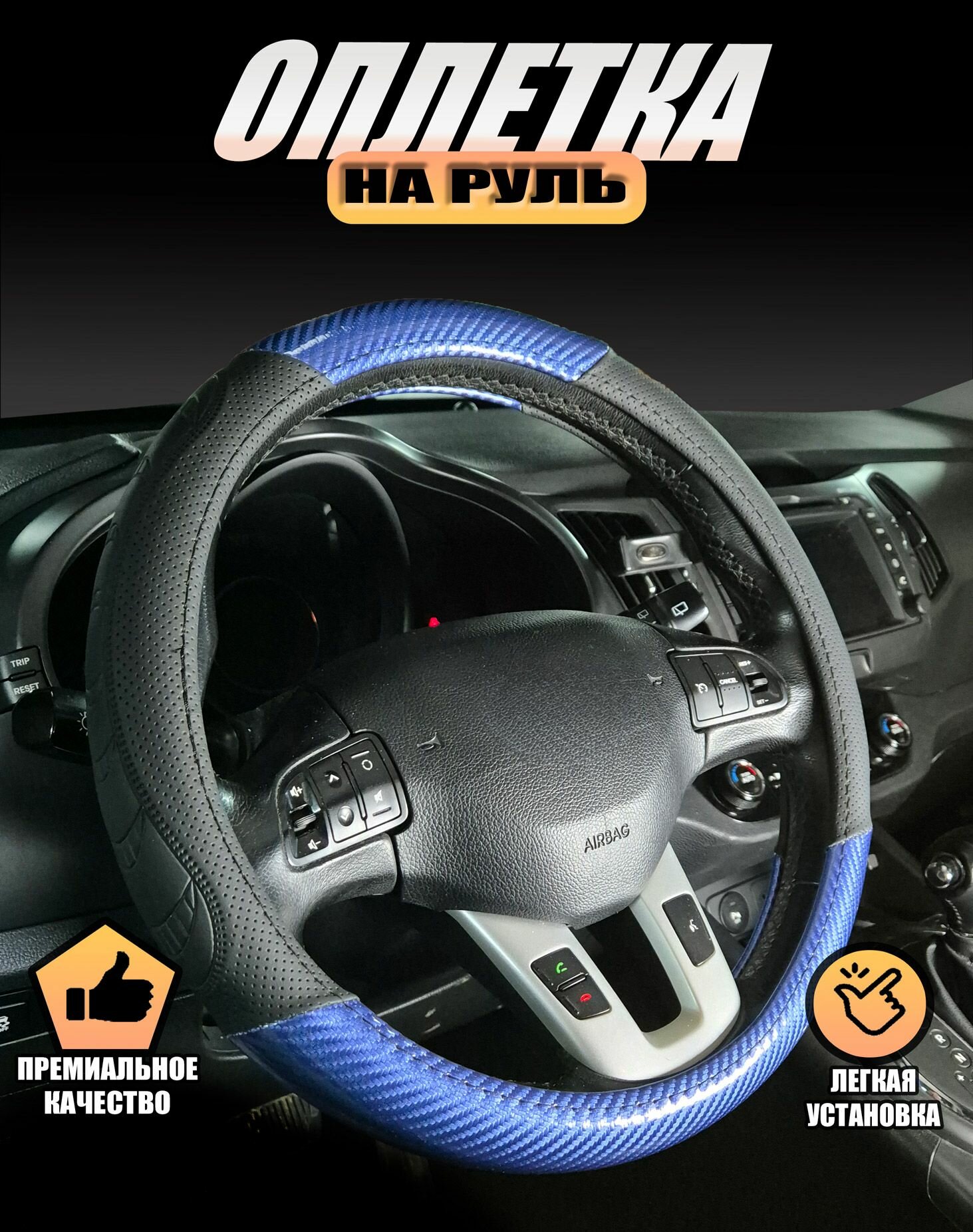 Отзывы на Оплетка, чехол (накидка) на руль Ниссан Патрол (2019 - 2024) внедорожник 5 дверей / Nissan Patrol, Экокожа, Черный и синий