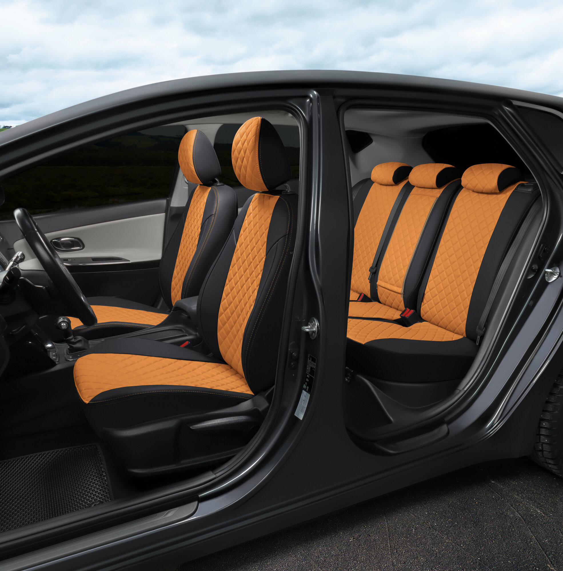Комплект чехлов Автопилот Ромб Hyundai Solaris I Sd / KIA Rio III Sd (40/60) с 10-17г. Черный + Оранжевый информация: