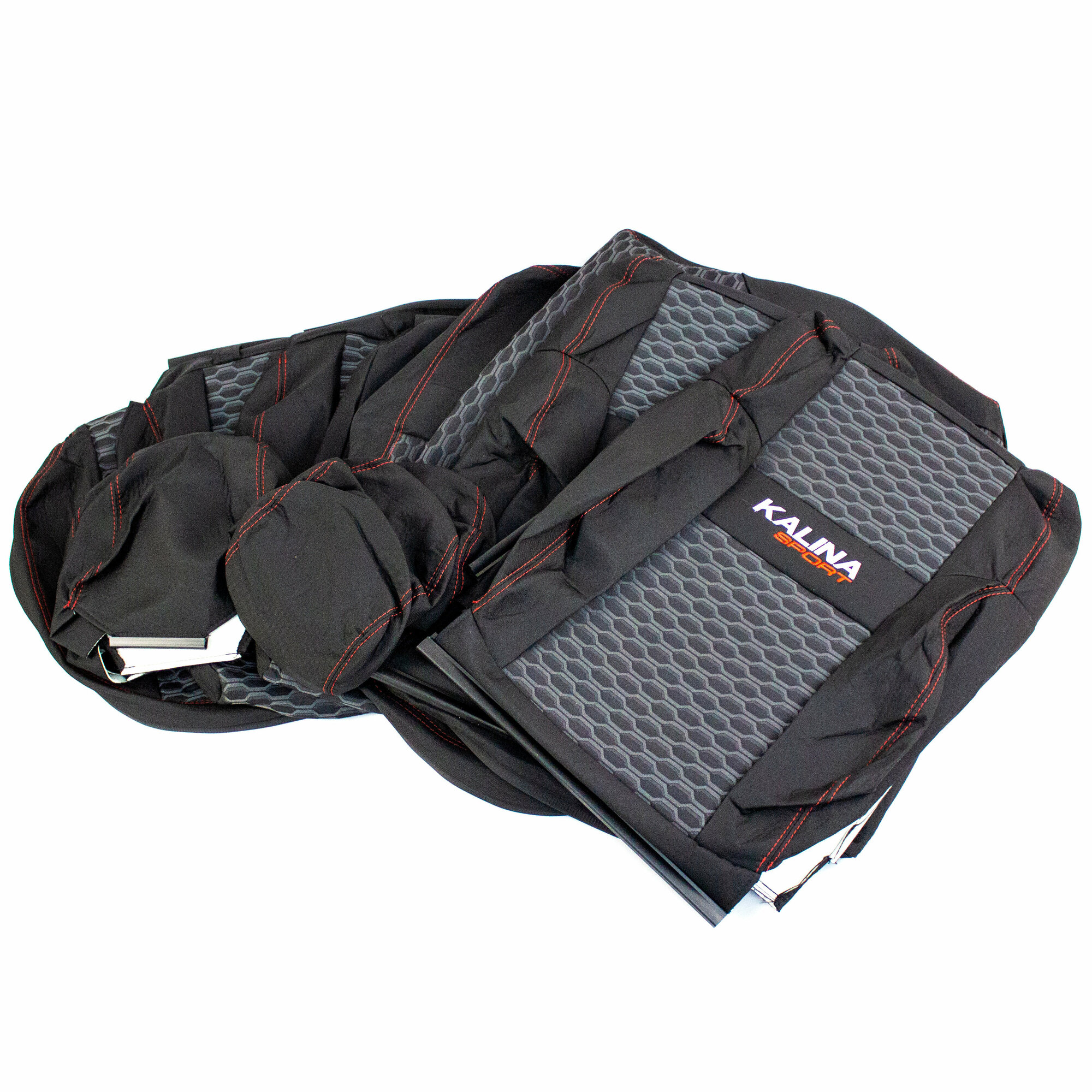 10 цен на Обивка сидений Калина спорт (не чехлы) с вышивкой "Kalina Sport" узор "Синус" комплект 11 элементов.