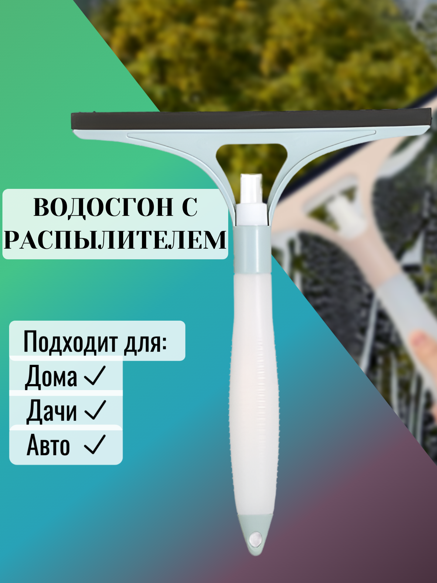 Отзывы на Водосгон с распылителем для автомобиля, 31см, сиреневый, мятный.