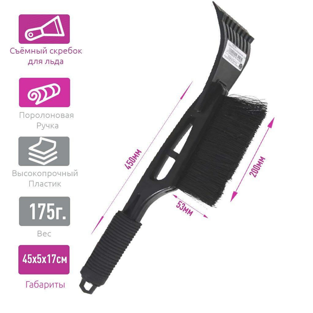 Щетка от снега "Альпийка", съёмный скребок сверху, мягкая ручка, сметка от снега, 45 см информация: