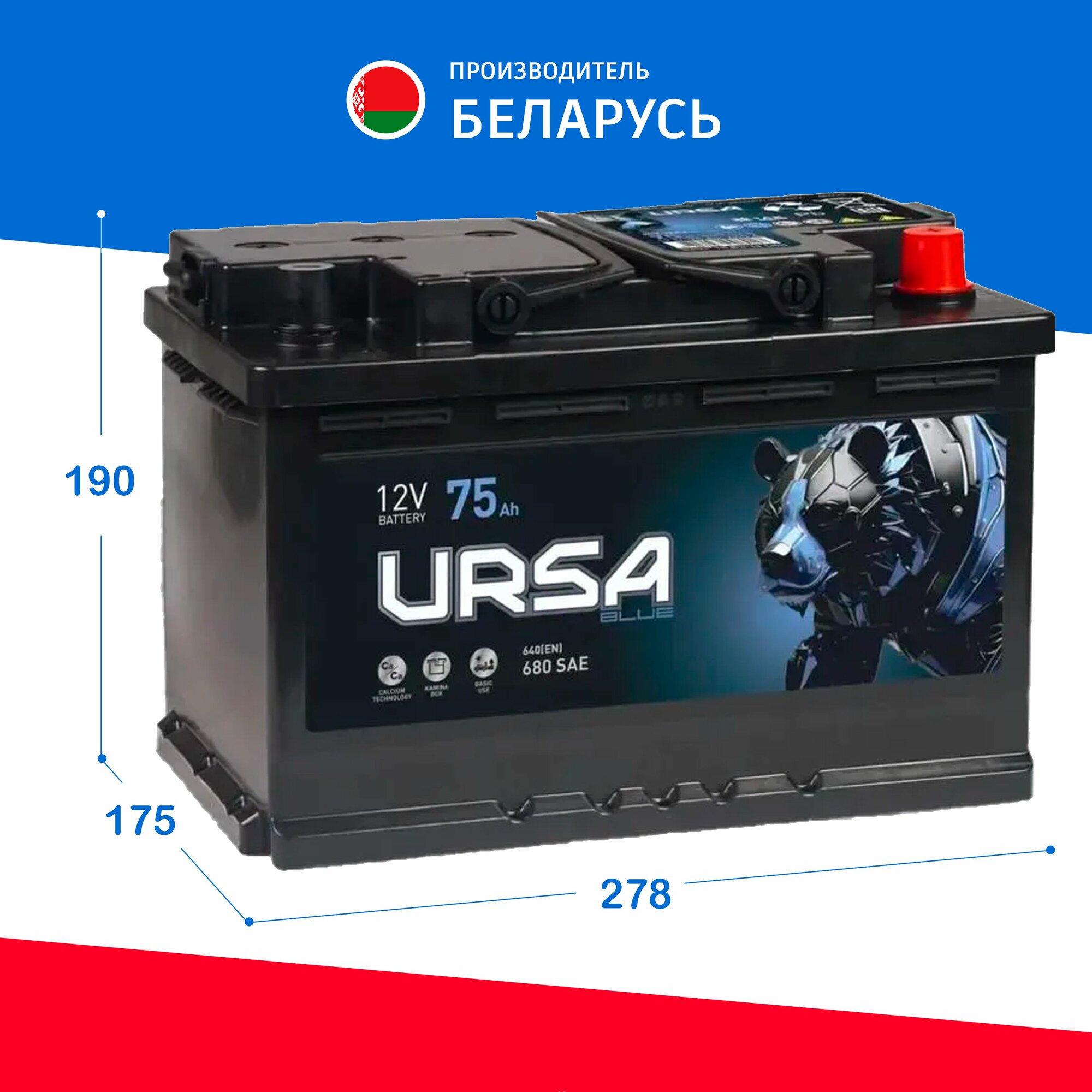 Автомобильный Аккумулятор URSA Blue 75Ah обр. пол. 640А 278x175x190 информация: