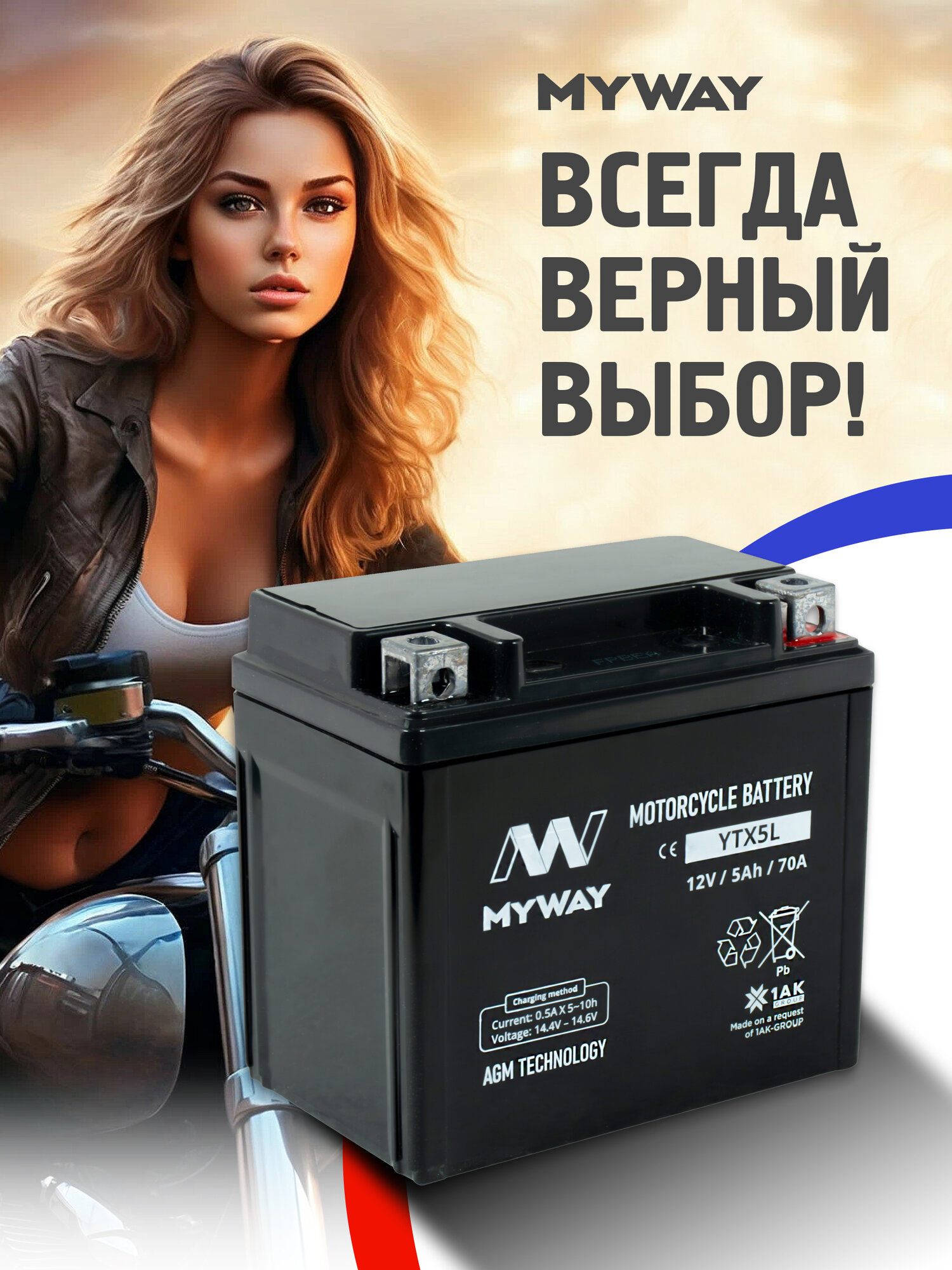 Аккумулятор на мотоцикл 12 вольт 5ah AGM для мопеда, скутера 1 755 ₽