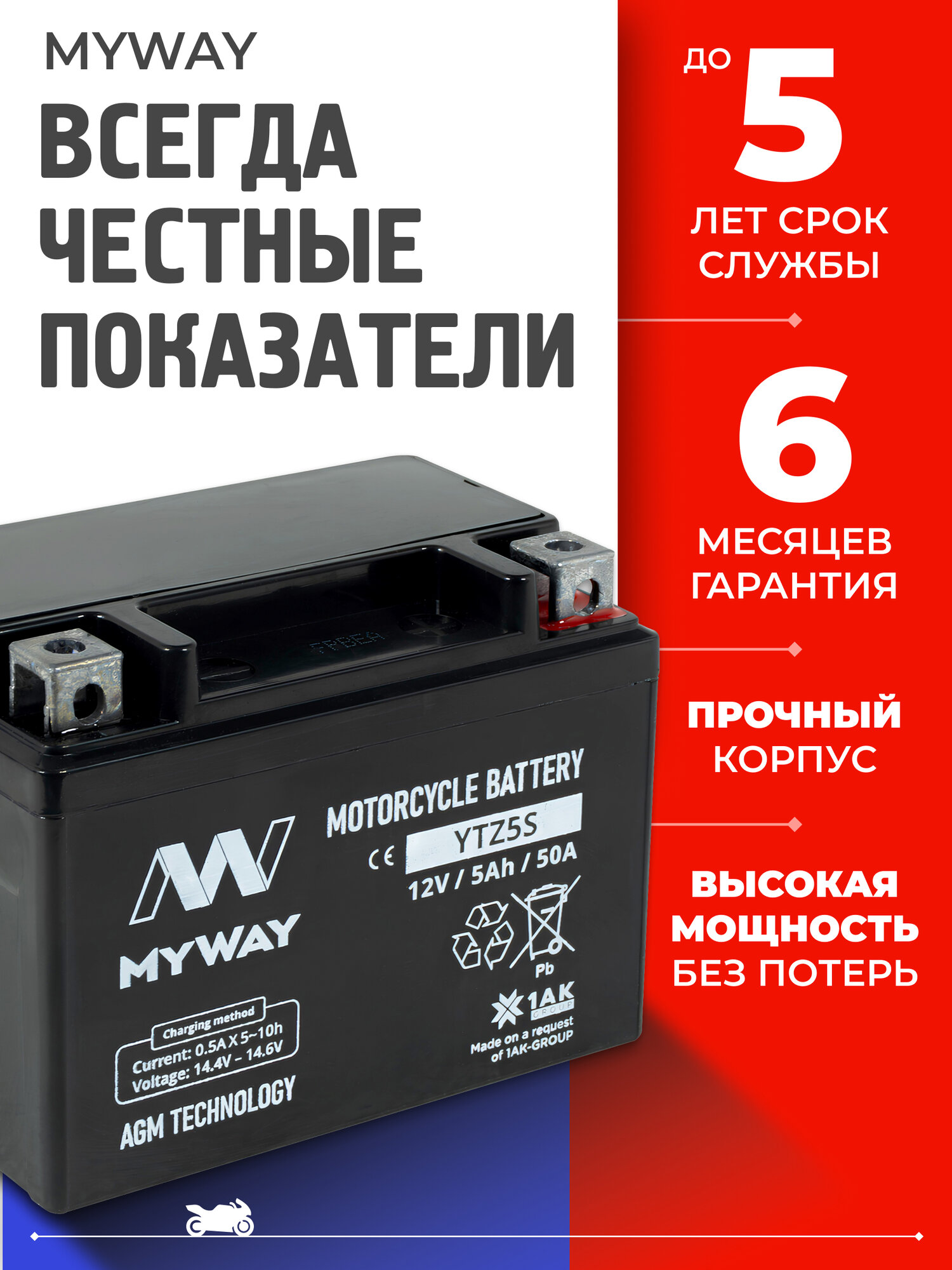Аккумулятор на мотоцикл 12 вольт 5ah AGM для мопеда, скутера информация: