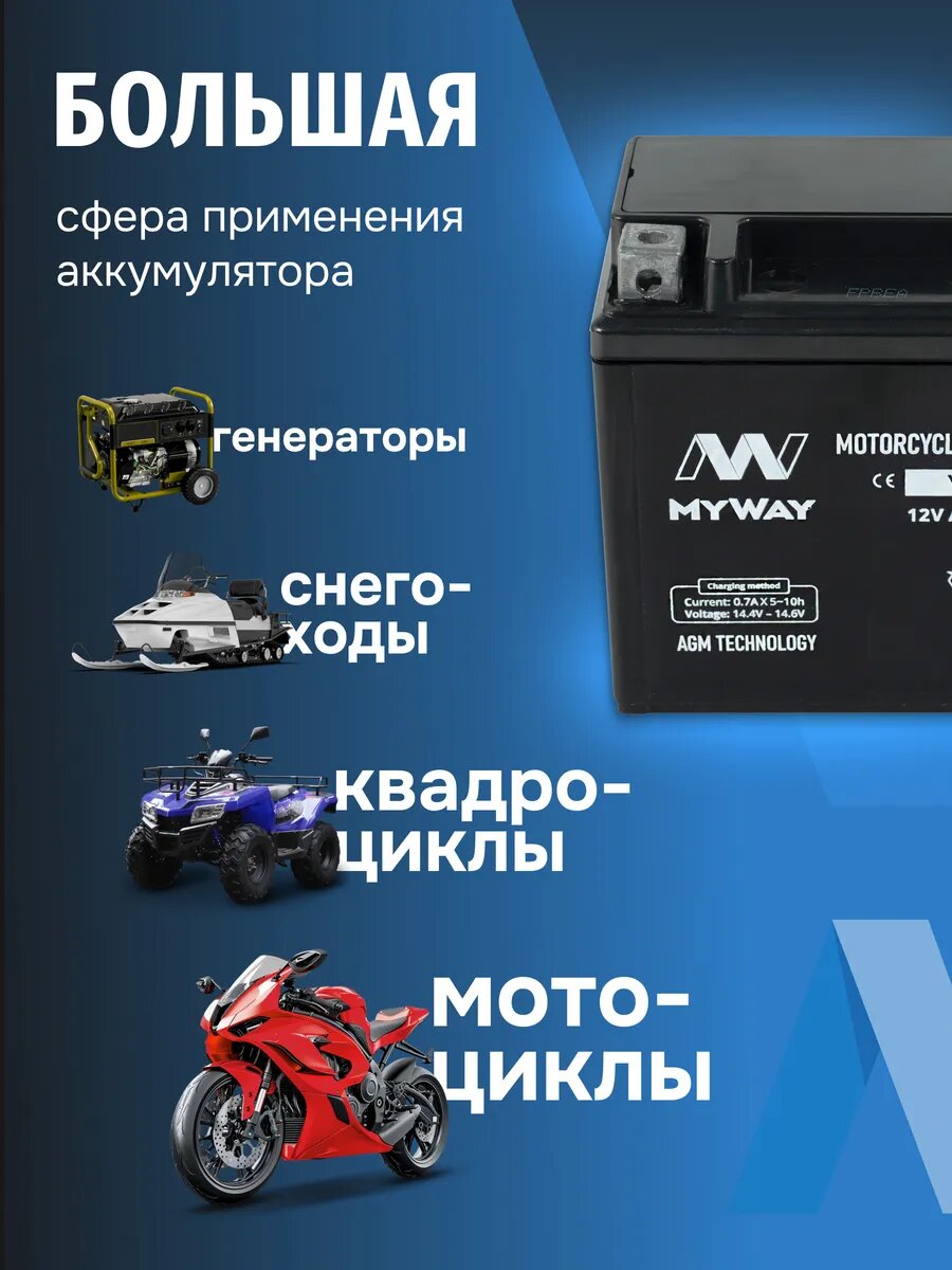 Аккумулятор на мотоцикл, квадроцикл, генератор 12v 7ah AGM информация:
