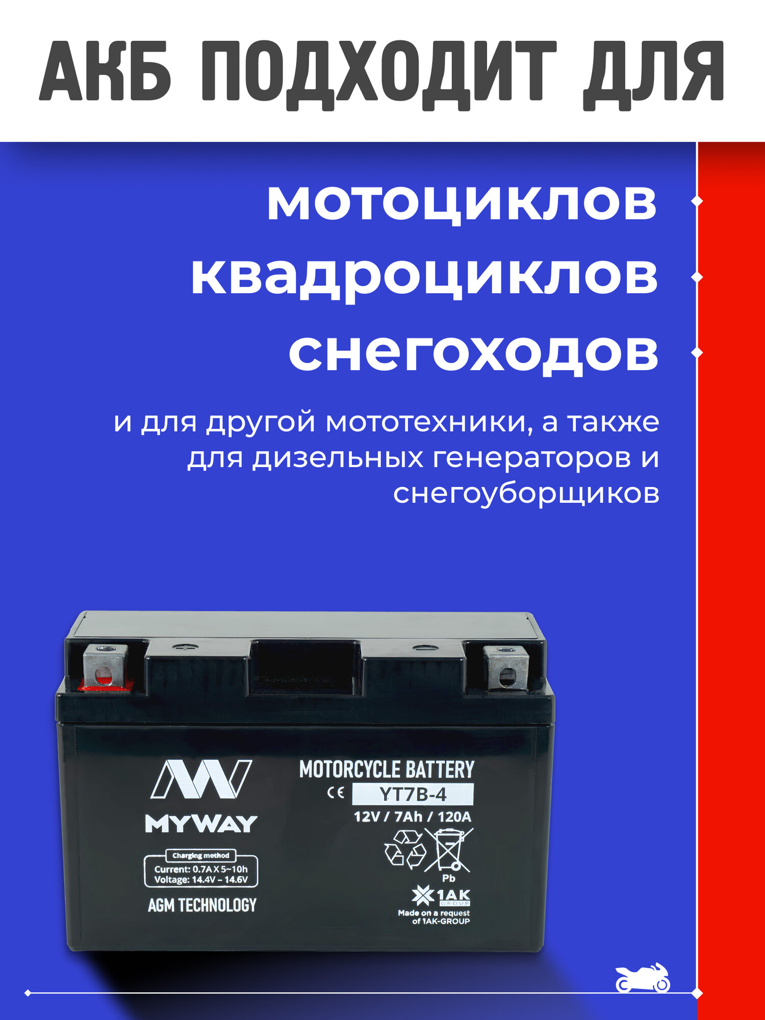 Аккумулятор для мотоцикла 12v 7ah AGM на скутер, мопед информация: