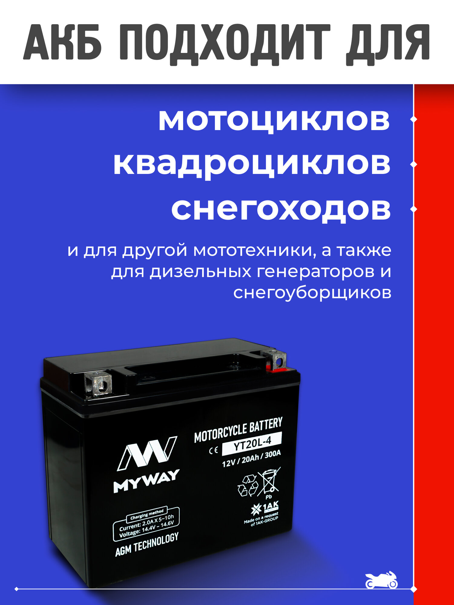 Аккумулятор эндуро для мотоцикла 12v 20ah AGM на мопед альфа информация: