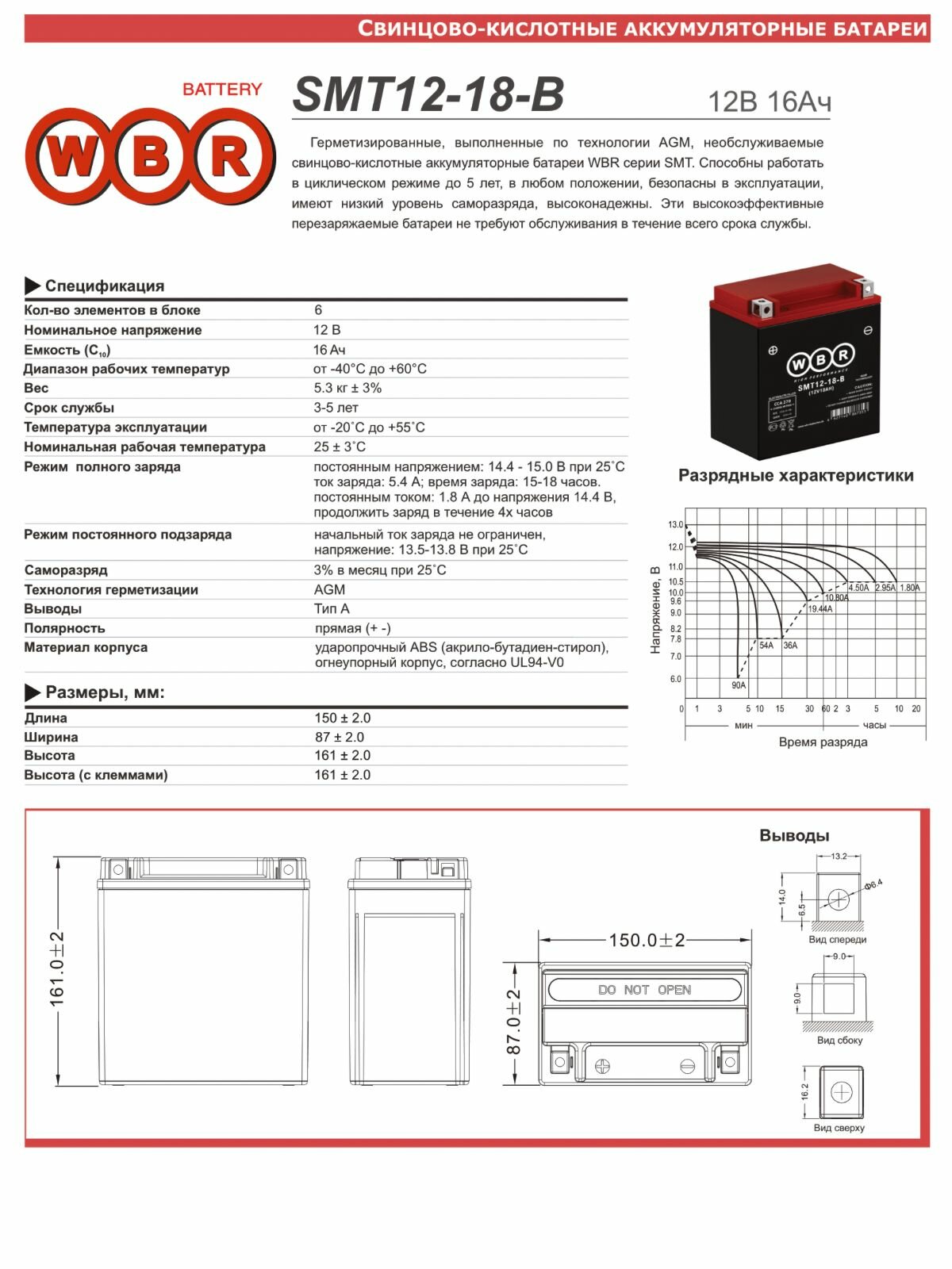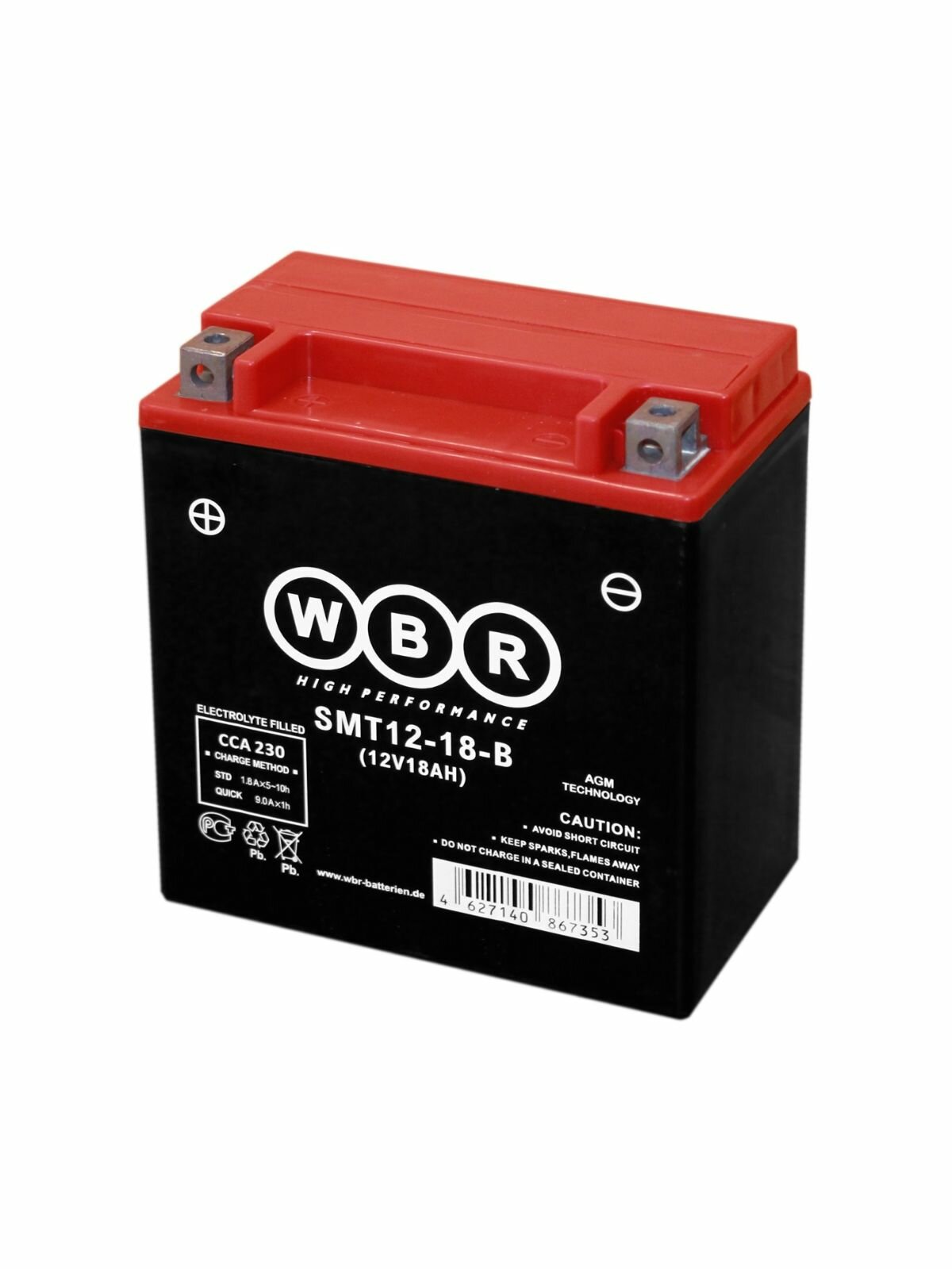 Аккумулятор SMT12-18-B WBR (12В 18Ач) для мотоцикла, снегохода, квадроцикла, скутера / Батарея для мототехники информация: