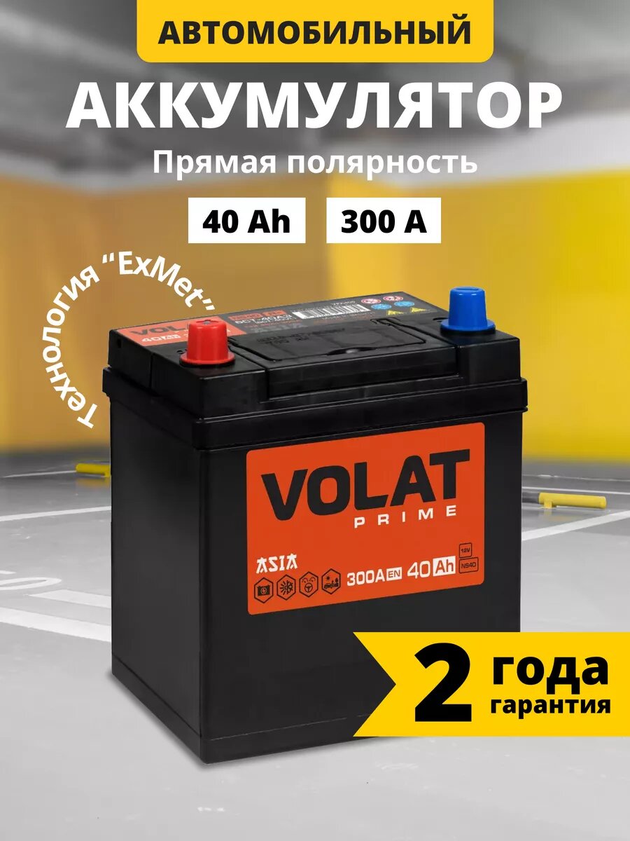 Аккумулятор автомобильный VOLAT Prime Asia 40 Ач (без борта) 300 A прямая полярность 187x127x225 мм информация: