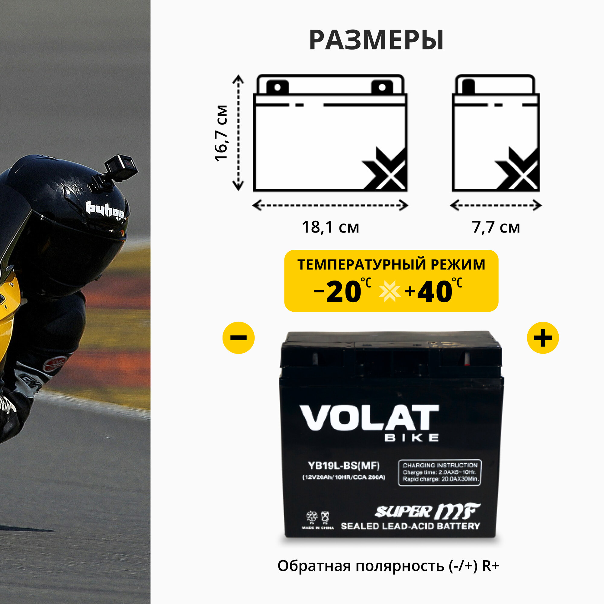 | Маркировка мотоаккумулятора | YT20-4(MF)Volat |