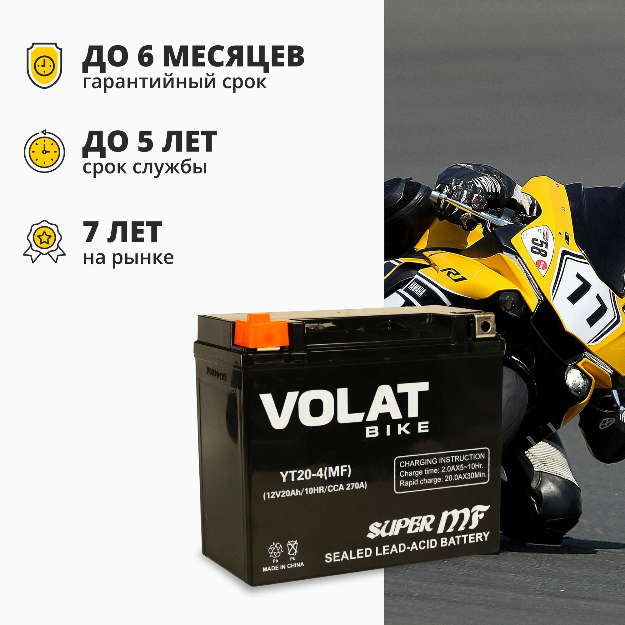 10 цен на Аккумулятор для мотоцикла 12v Volat YT20-4(MF) прямая полярность 20 Ah 270 A AGM, акб на скутер, мопед, квадроцикл, мотоцикл