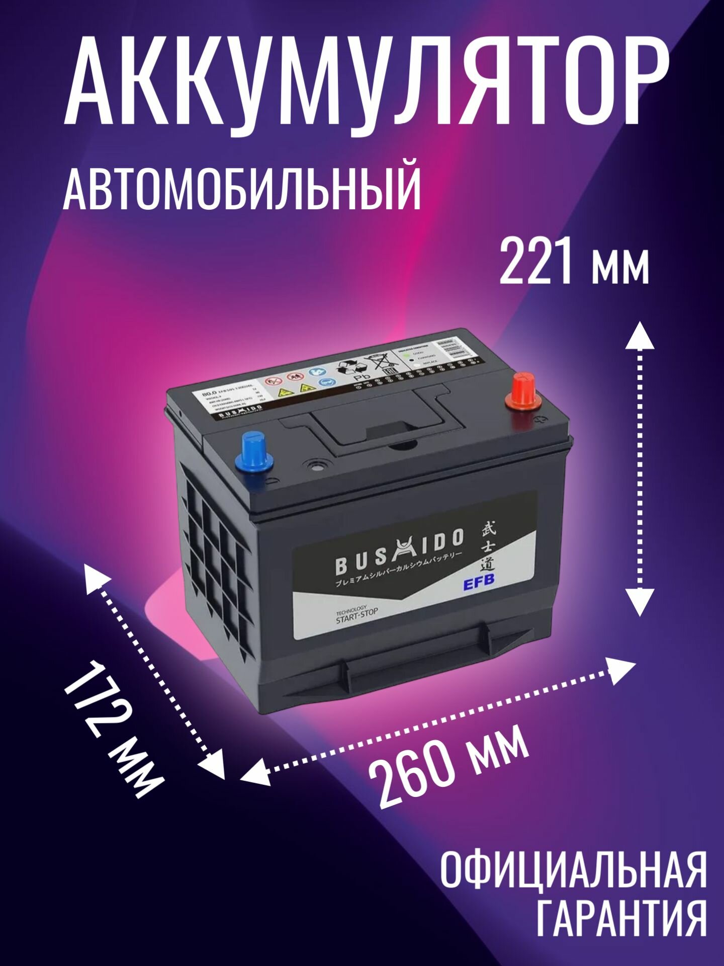 Отзывы на Аккумулятор автомобильный Bushido EFB 130D26L 12В 80Ач 730А, Обратная полярность