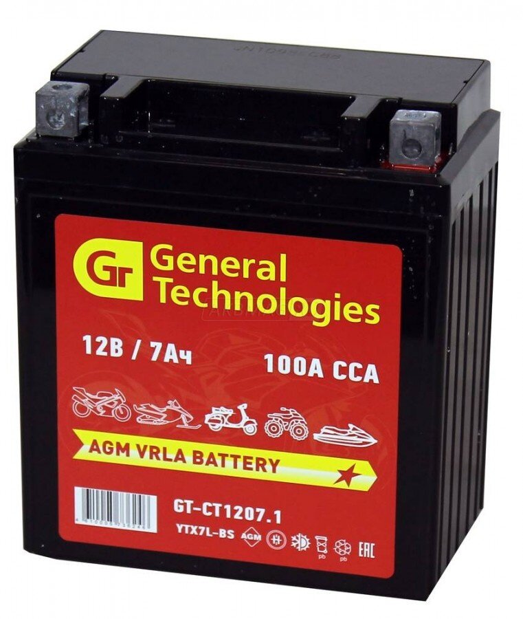 Аккумулятор General Technologies GT 1207.1 12V/7Ач AGM 114x70x132 (YTX7L-BS) информация: