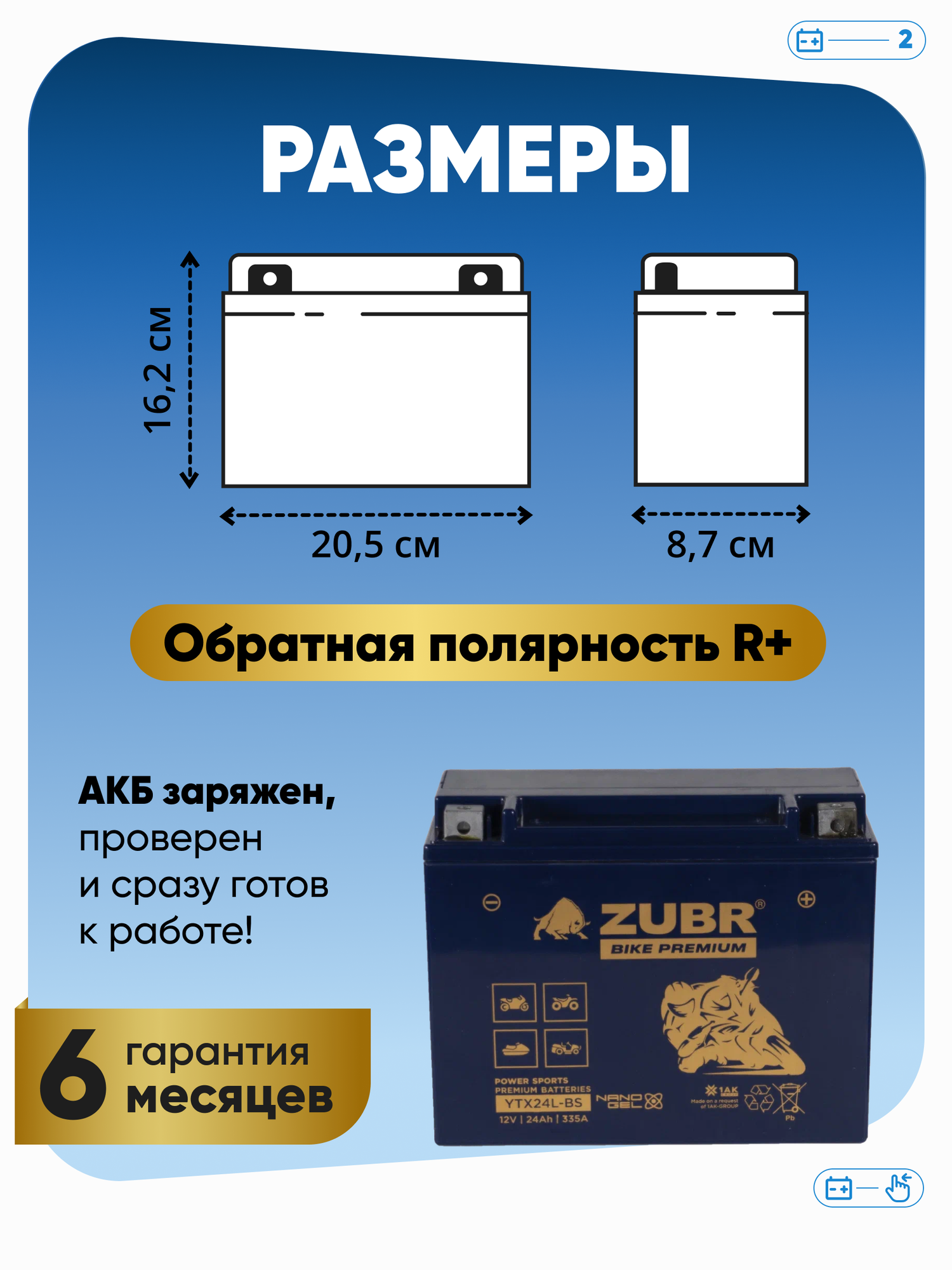 Отзывы на Аккумулятор для мотоцикла 12v 24Ah 335 А ZUBR BIKE PREMIUM гелевый, акб на скутер, мопед, квадроцикл, мотоцикл