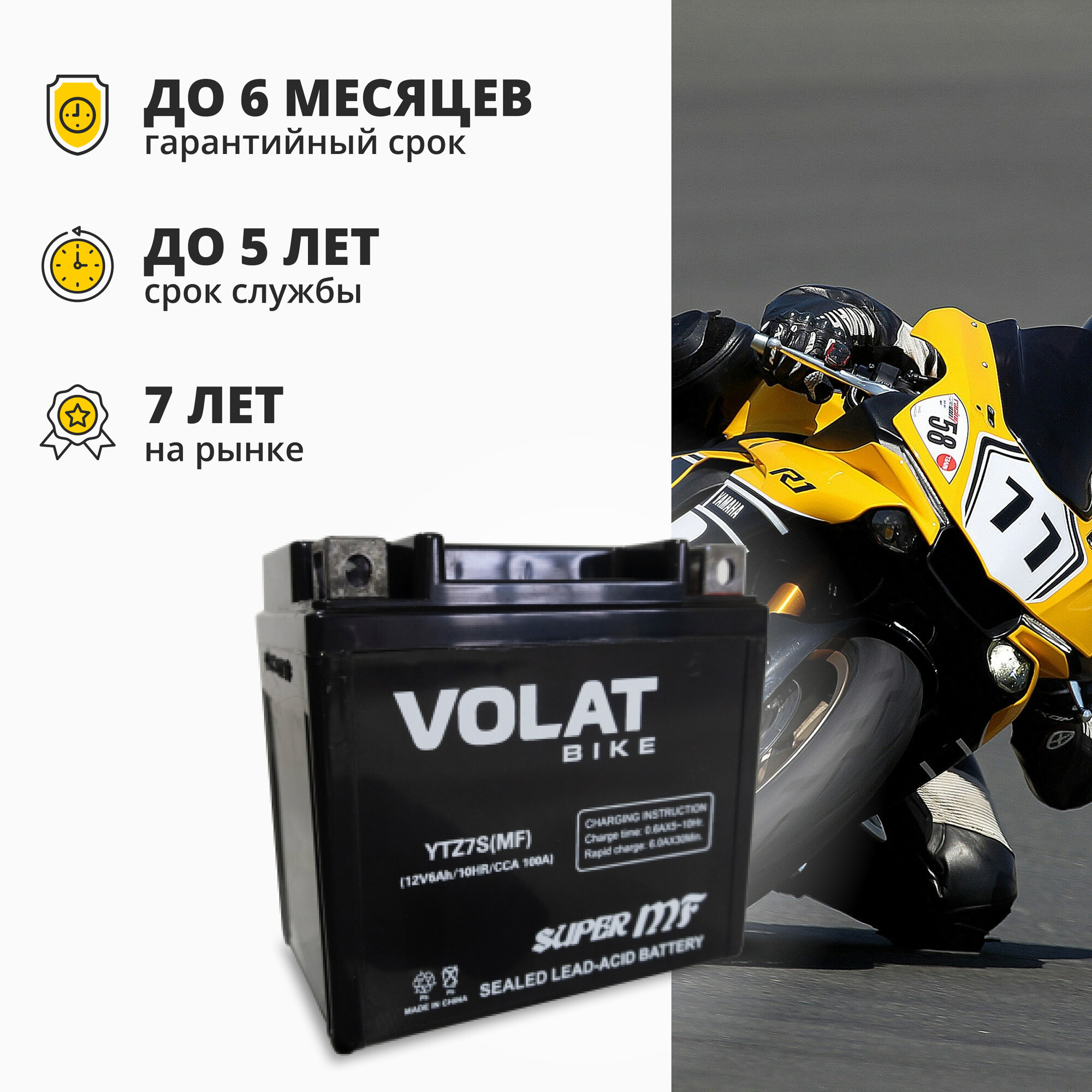| Маркировка мотоаккумулятора | YTZ7S(MF)Volat |