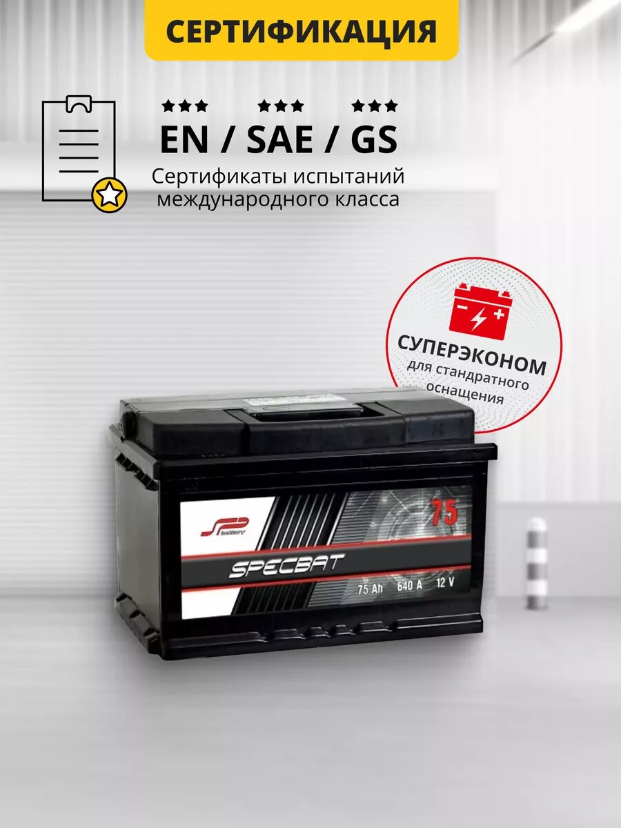 10 цен на Аккумулятор автомобильный 75 Ач SPECBAT 640 A обратная полярность 276x175x190 мм