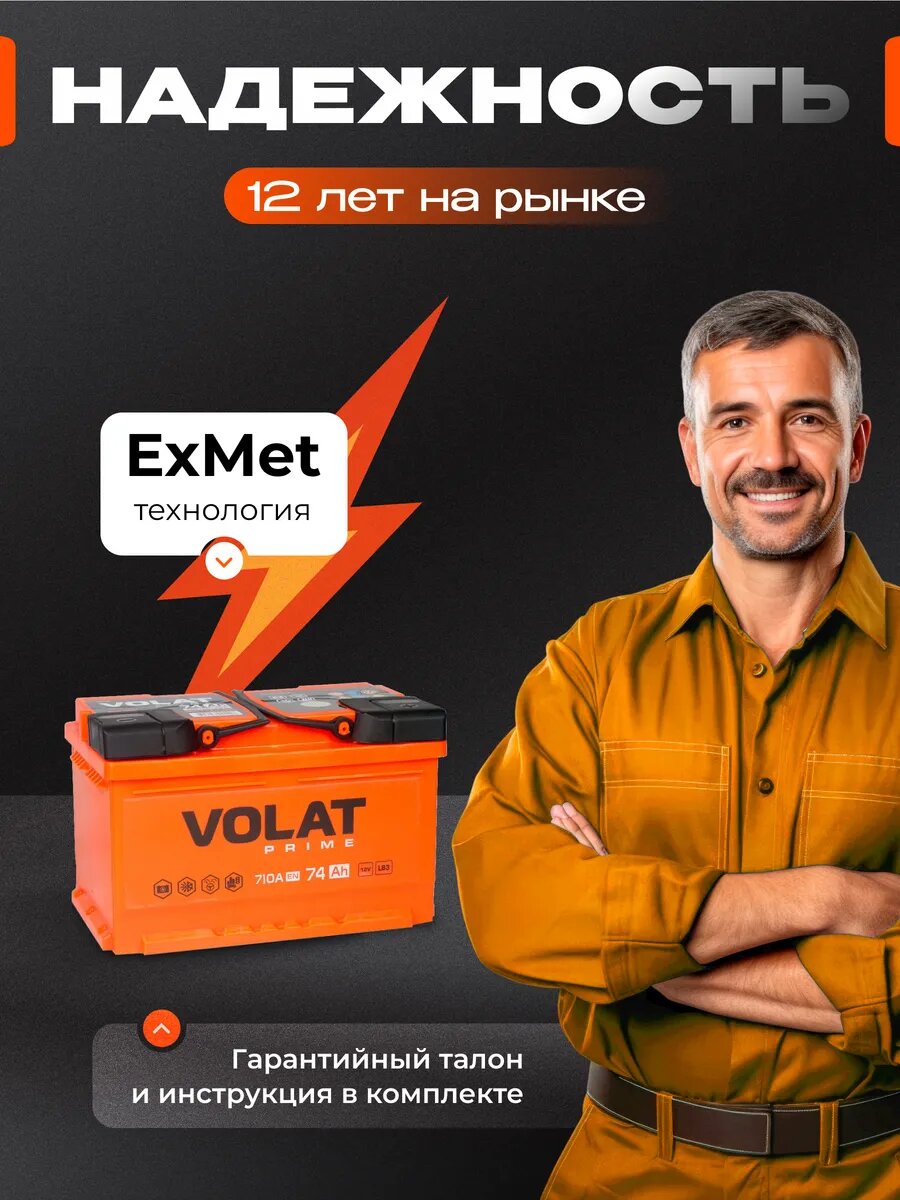 Аккумулятор автомобильный VOLAT Prime (низкий) 74 Ah 710 A прямая полярность 278x175x175 информация: