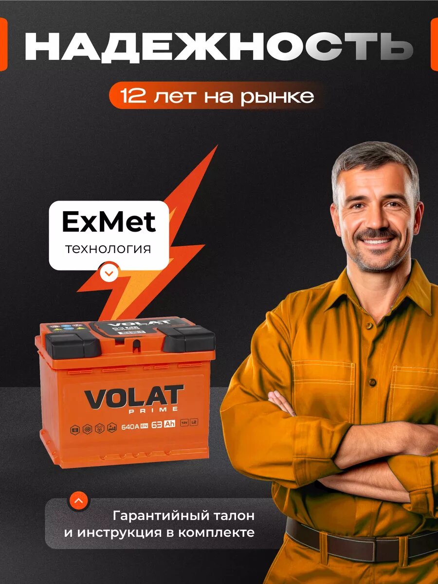 Аккумулятор автомобильный VOLAT Prime 63 Ah 640 A прямая полярность 242x175x190 информация: