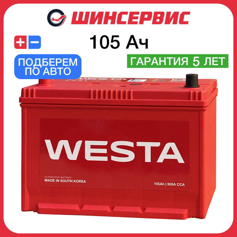 Автомобильный аккумулятор Westa (korea) 125d31r smf 105 Ач 900 А прямая полярность 220x175x303 мм информация: