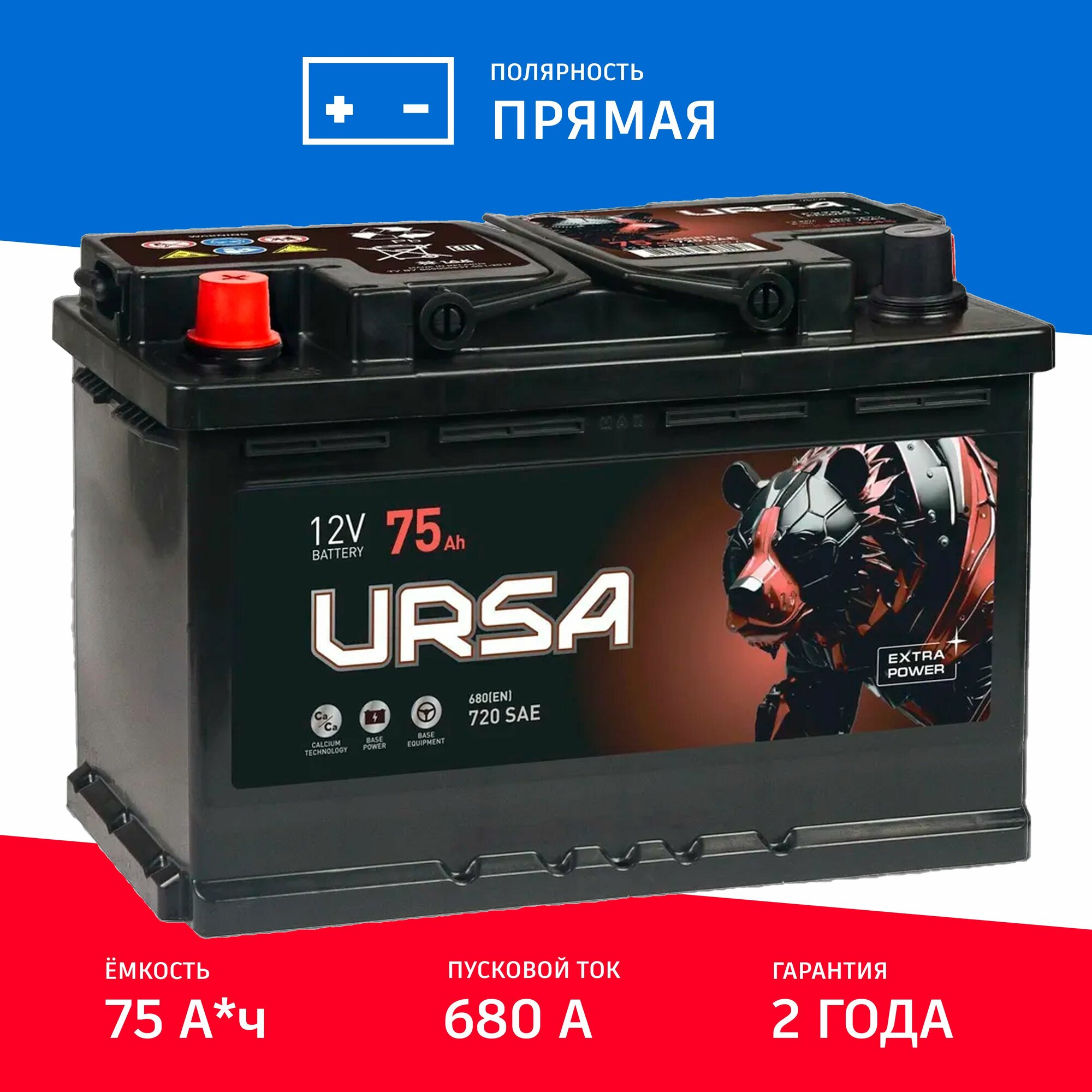 Автомобильный Аккумулятор URSA Extra Power 75Ah прям. пол. 680А 278x175x190 информация: