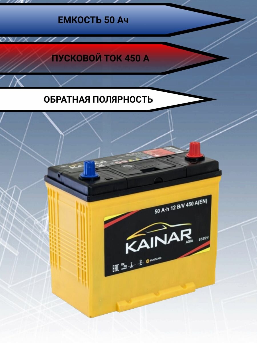 Автомобильный аккумулятор 12v KAINAR 6ст-50 Ач обратная полярность на легковую машину Honda Civic, Accord, Stepwgn, Mazda Demio, Nissan March информация: