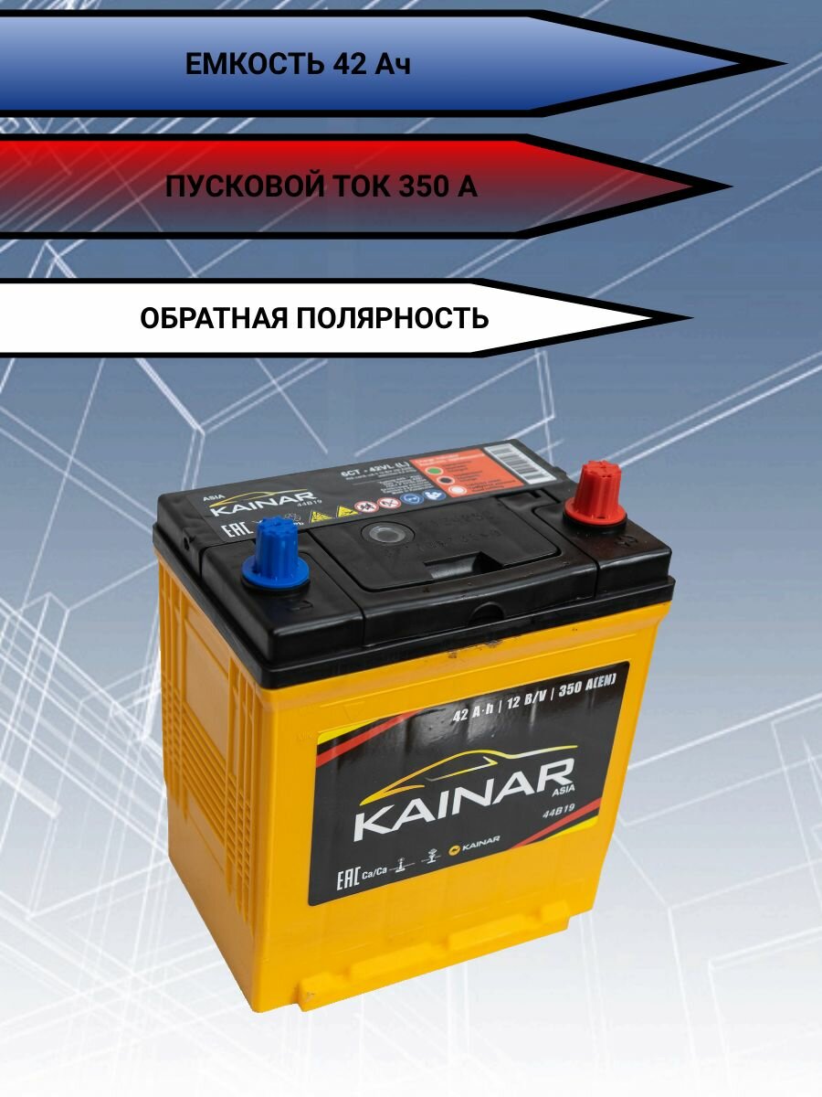 Автомобильный аккумулятор 12v KAINAR 6ст-42 Ач обратная полярность на легковую машину Chevrolet Spark, Honda Fit, Freed, Kia Picanto информация: