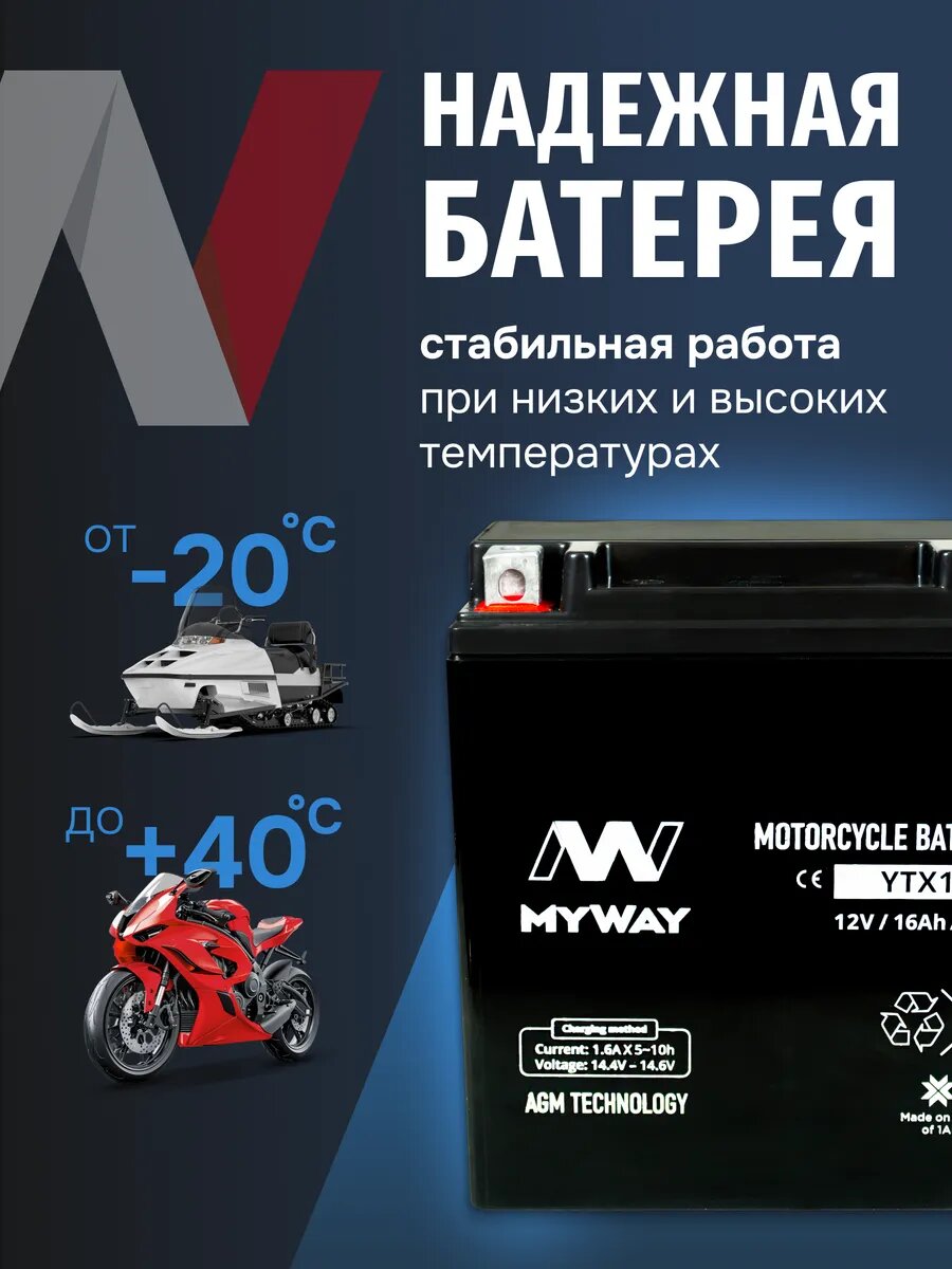 10 цен на Аккумулятор на мотоцикл, квадроцикл, трицикл 12v 16ah AGM