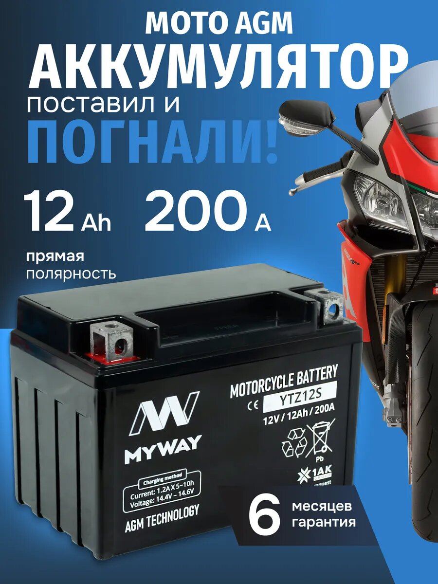 10 цен на Аккумулятор мотоциклетный 12в 12ач AGM для мопеда, скутера
