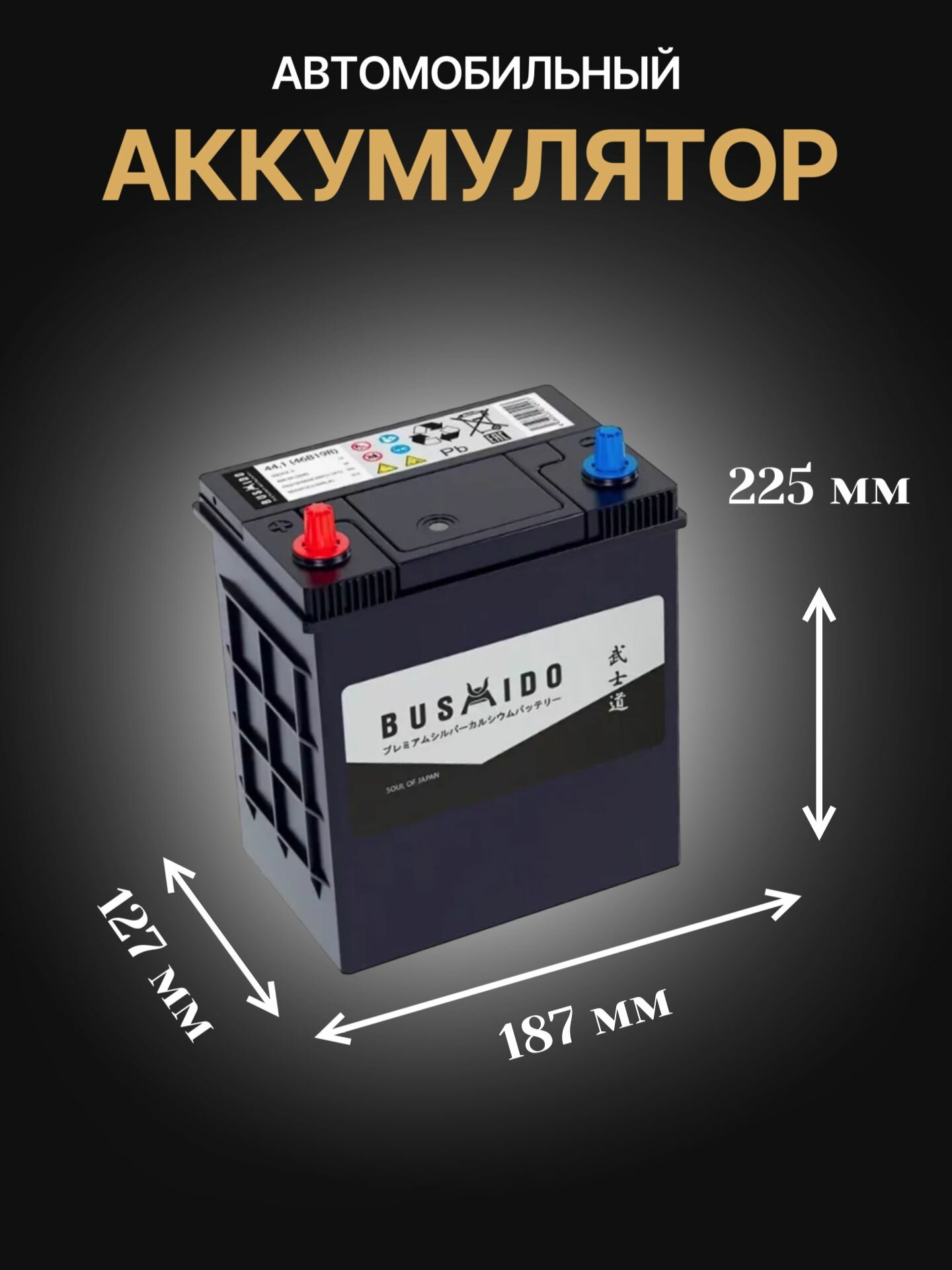 Аккумулятор автомобильный Bushido SJ 46B19R 12В 44Ач 400А, Прямая полярность информация: