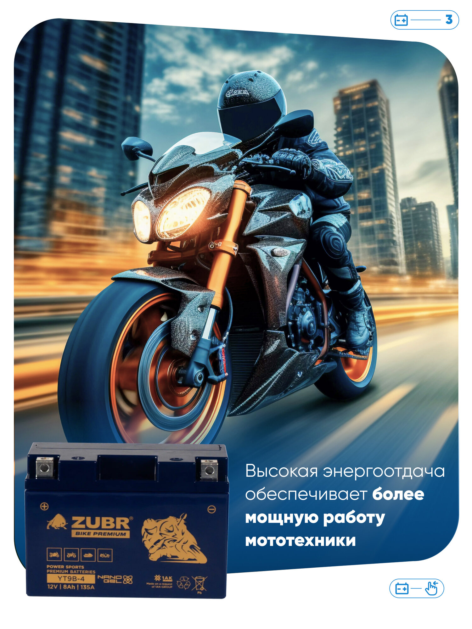 Отзывы на Аккумулятор для мотоцикла 12v ZUBR BIKE PREMIUM YT9B-4 (NANO-GEL) прямая полярность 8 Ah 135 A гелевый, акб на скутер, мопед, квадроцикл, мотоцикл