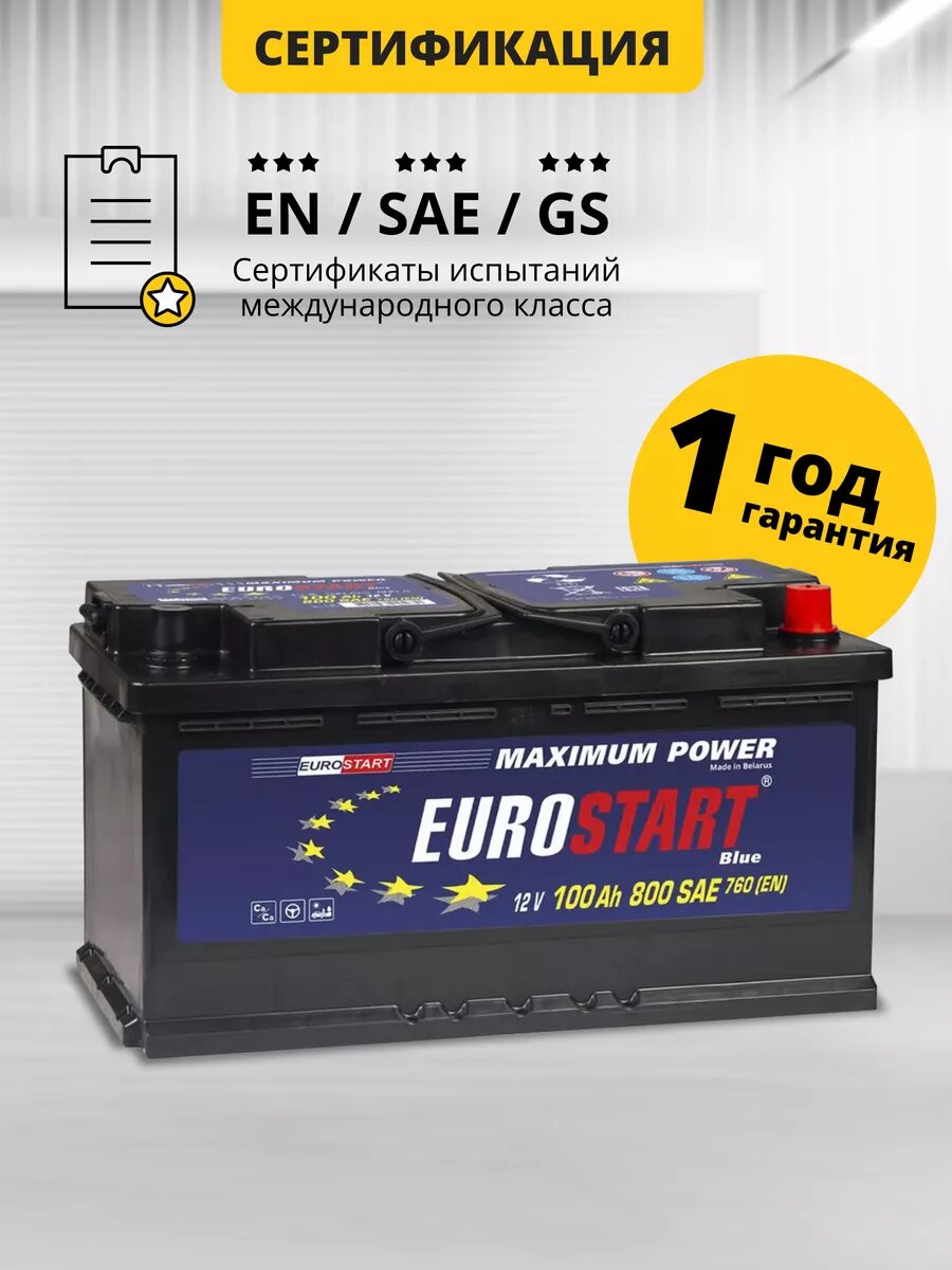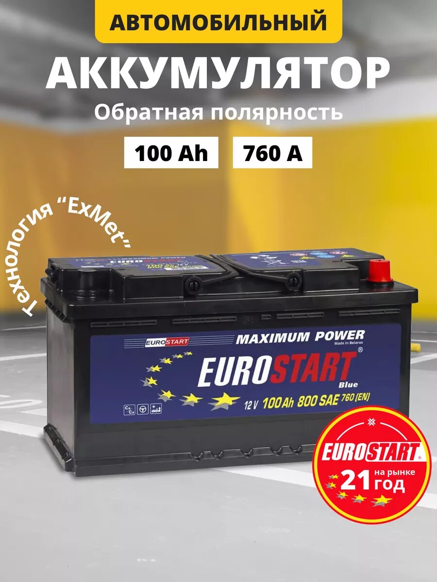 Отзывы на Аккумулятор автомобильный Eurostart Blue 100 А/ч 760 А обр. пол. Евро авто (353х175х190) EB1000