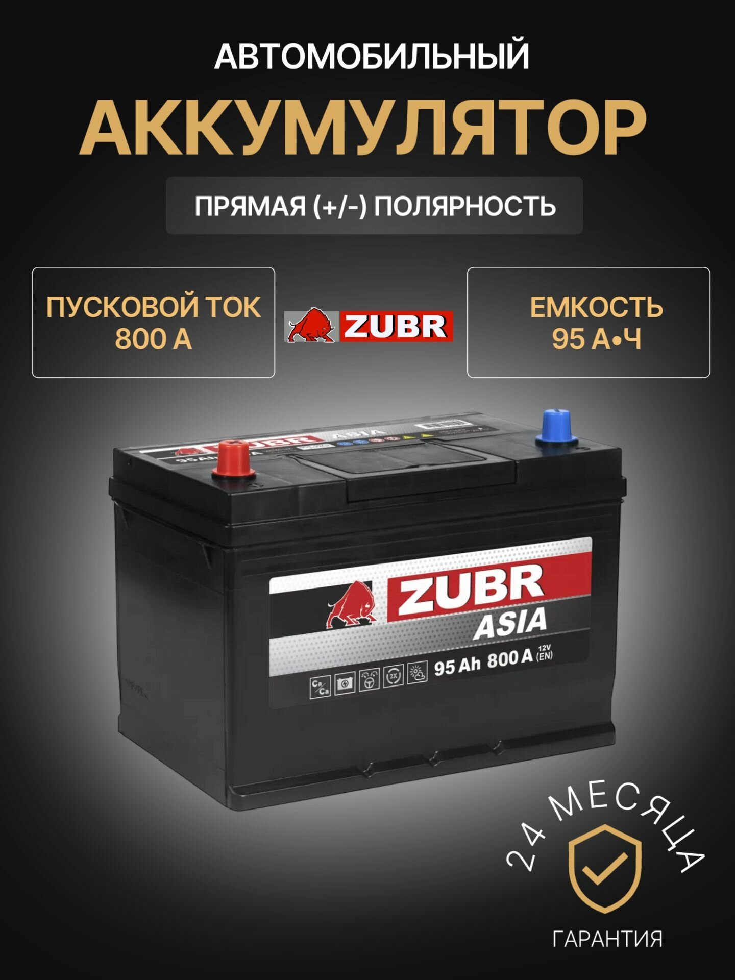 Аккумулятор автомобильный ZUBR Ultra Asia ZSA951 12В 95Ач 820А информация: