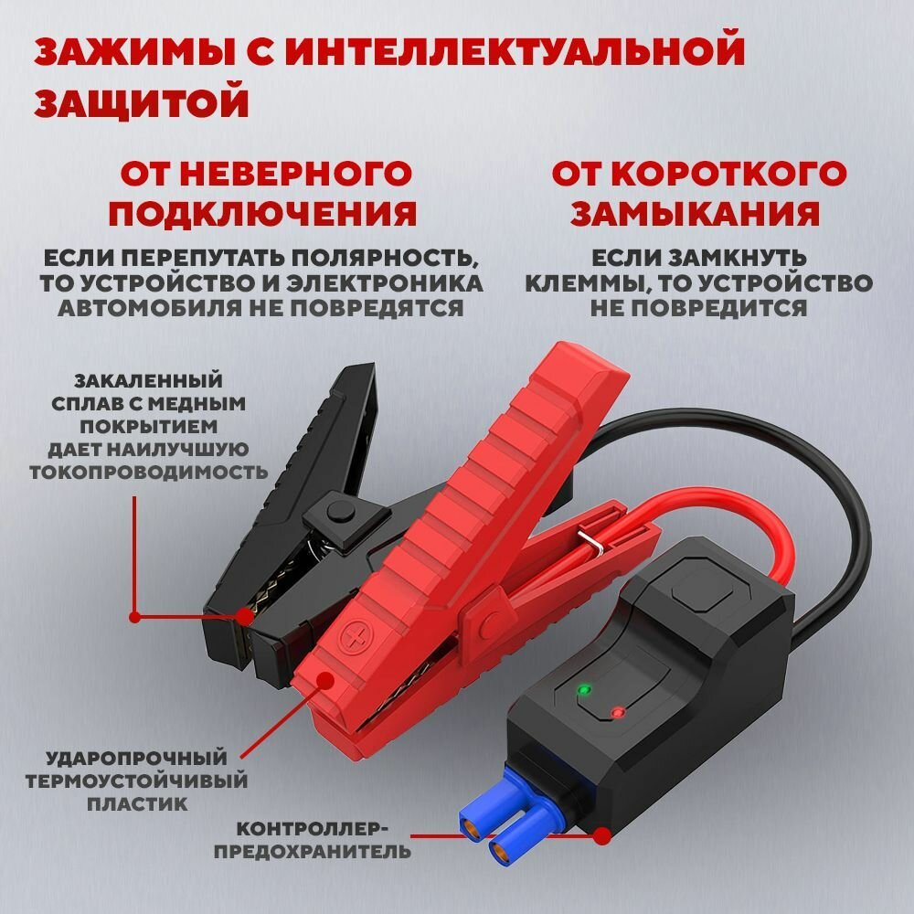 Пусковое устройство для авто, LED фонарь, черный матовый, 800 А, 18 см