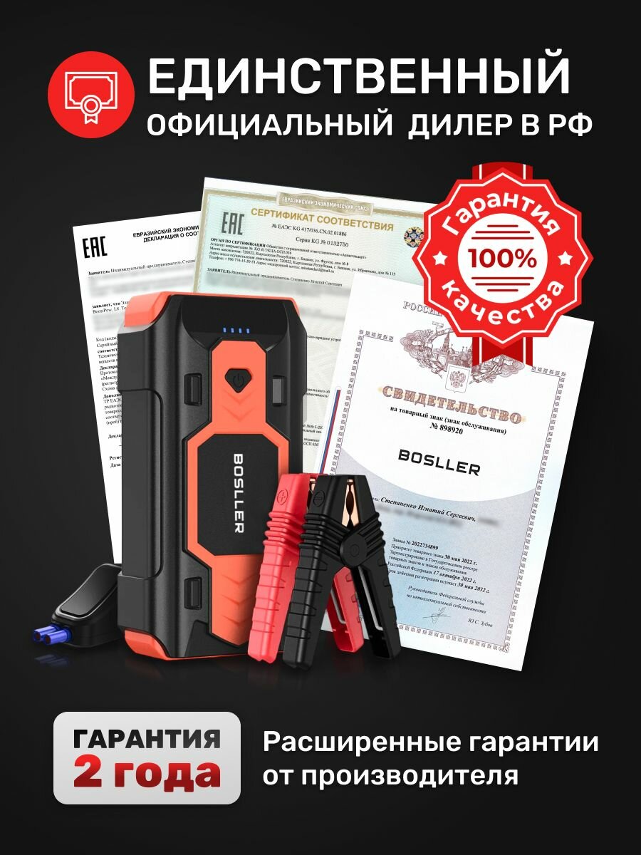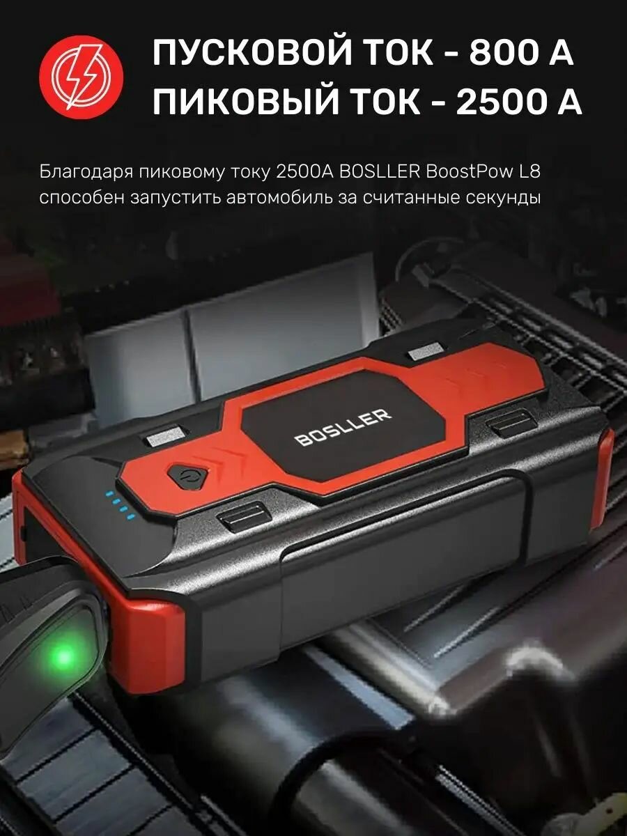 Пусковое зарядное устройство BOSLLER BoostPow L8 для аккумулятора автомобиля, бустер автомобильный пусковой для запуска машины с фонарем информация: