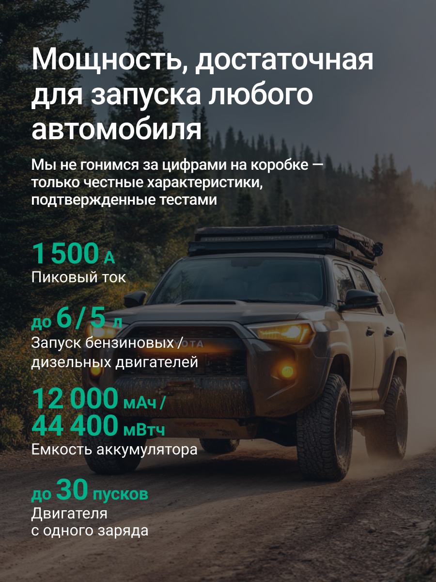 0 отзывов, средняя оценка 0. Чтобы купить «Пусковое устройство для автомобиля Roadgid CarBoost 1500 / бустер автомобильный пусковой / 1500А /12000 мАч /LED фонарь» по лучшей цене мы сканируем авито, алиэкспресс, маркет, озон, савеловский, плеер, горбушку, беру, официальные сайты и находим минимальную. Администрация не несет ответсвенность актуальность цен на Пусковое устройство для автомобиля Roadgid CarBoost 1500 / бустер автомобильный пусковой / 1500А /12000 мАч /LED фонарь, более подробно узнавайте на сайте магазина.