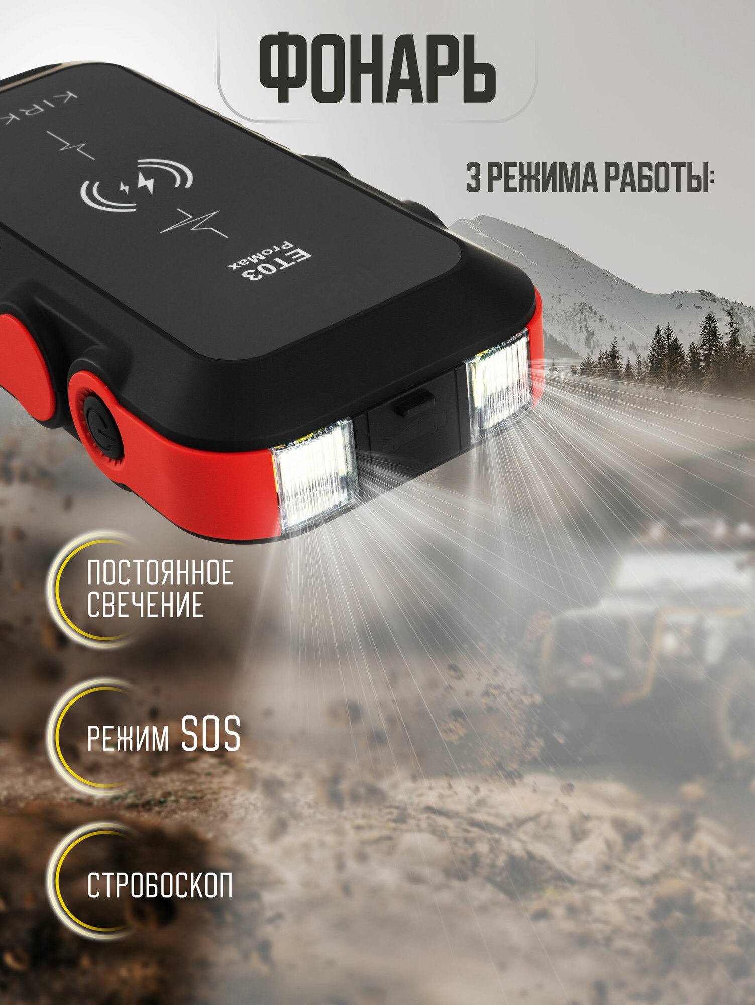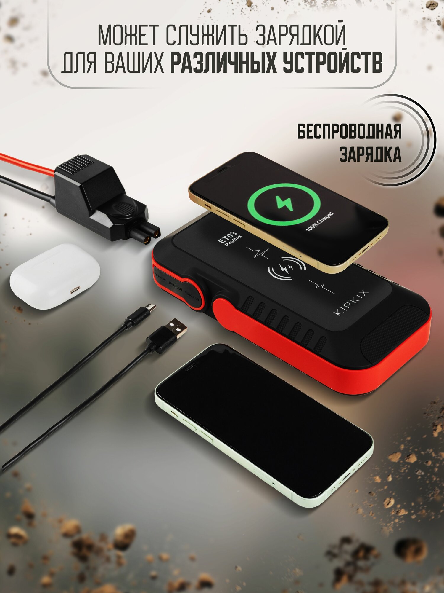 Пусковое зарядное устройство для АКБ, бустер автомобильный, ПЗУ с функцией беспроводной зарядки KIRKIX, 16000 mah информация: