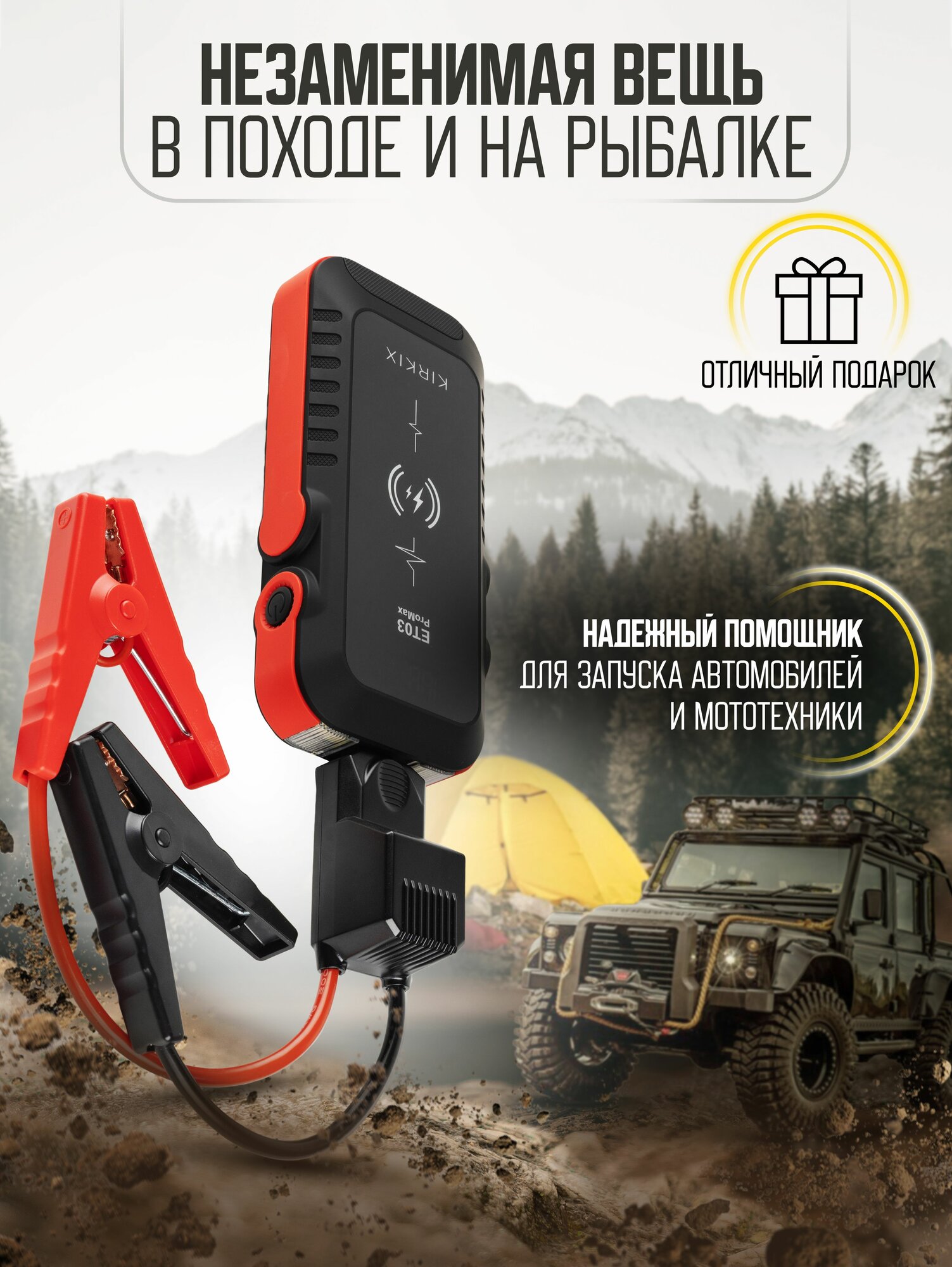 Отзывы на Пусковое зарядное устройство для АКБ, бустер автомобильный, ПЗУ с функцией беспроводной зарядки KIRKIX, 16000 mah
