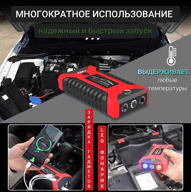 10 цен на Пуско-зарядное устройство High Power с Powerbank на 28000 мА⋅ч