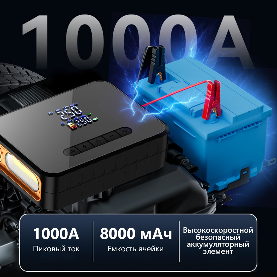 Отзывы на Пусковое устройство для автомобиля с компрессором, компрессор автомобильный , с дисплеем,8000mAh, Power Bank, LED фонарь