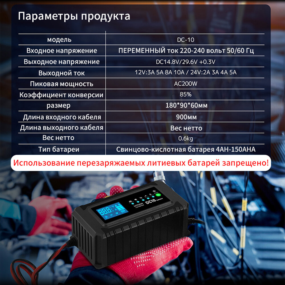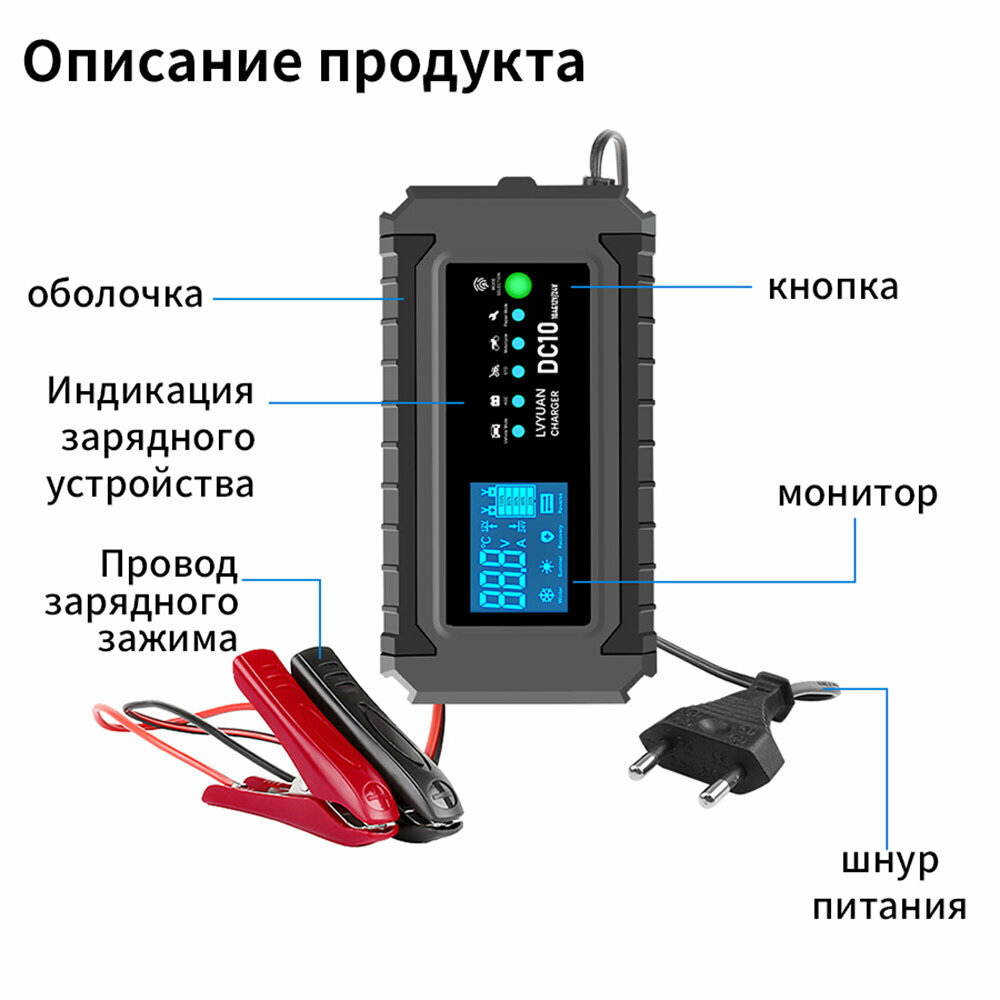 Отзывы на LVYUAN Зарядное устройство для аккумулятора 10A зарядное устройство ремонтного типа с автоматической адаптацией 12В/24В