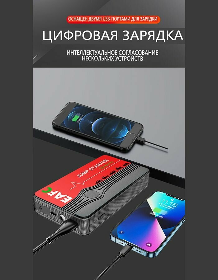 Автомобильное пусковое устройство портативное бустер EAFC 12000mAh 600A