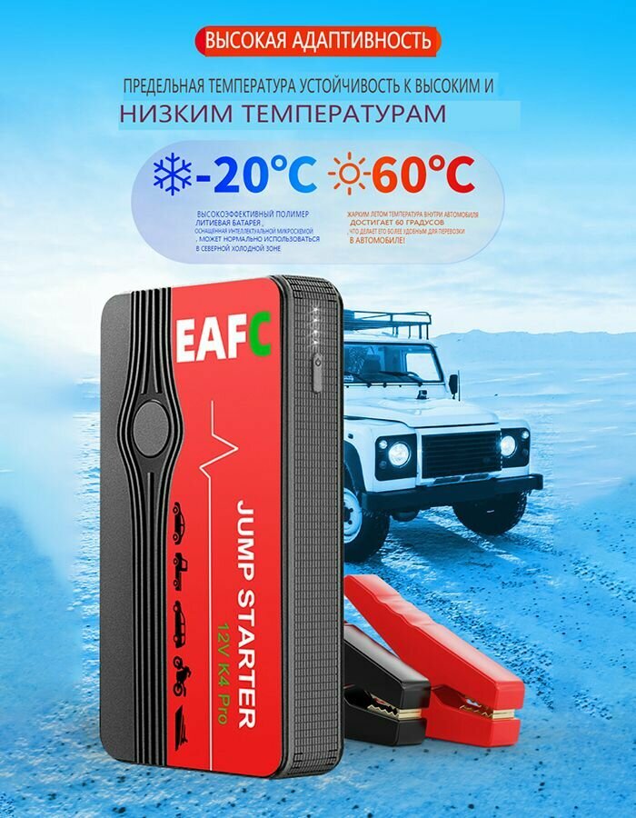 Отзывы на Пусковое зарядное устройство для автомобиля K4 Pro, Пиковый ток 600 А, Power Bank, 12В, в кейсе