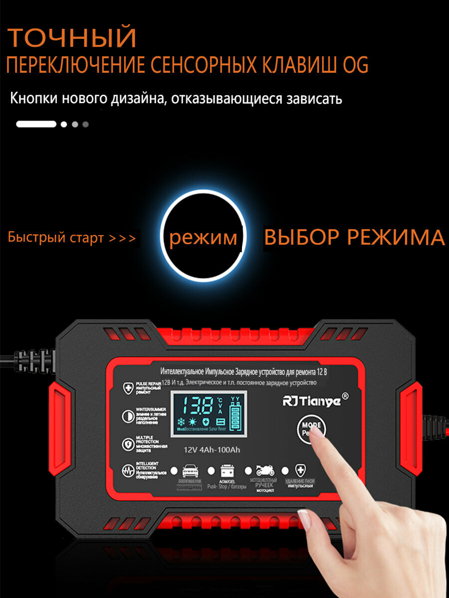 Полностью автоматическое автомобильное зарядное устройство для аккумуляторов 12В 6A с сенсорным экраном и ЖК-дисплеем