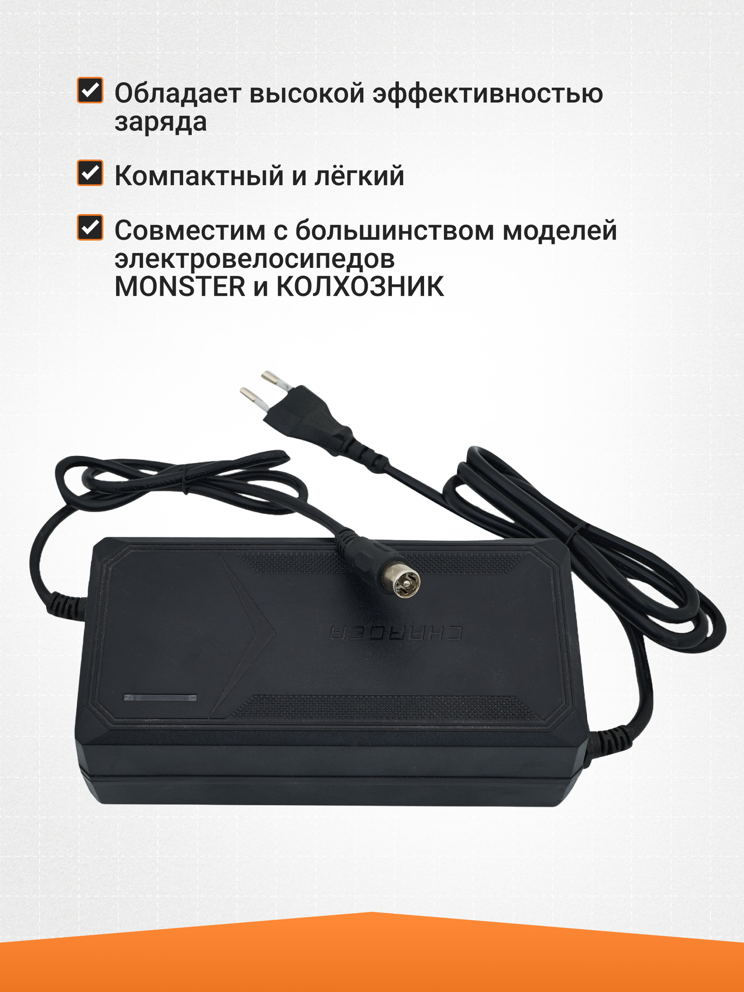 10 цен на Зарядное для электровелосипеда колхозник MONSTER 60V 3A 1pin
