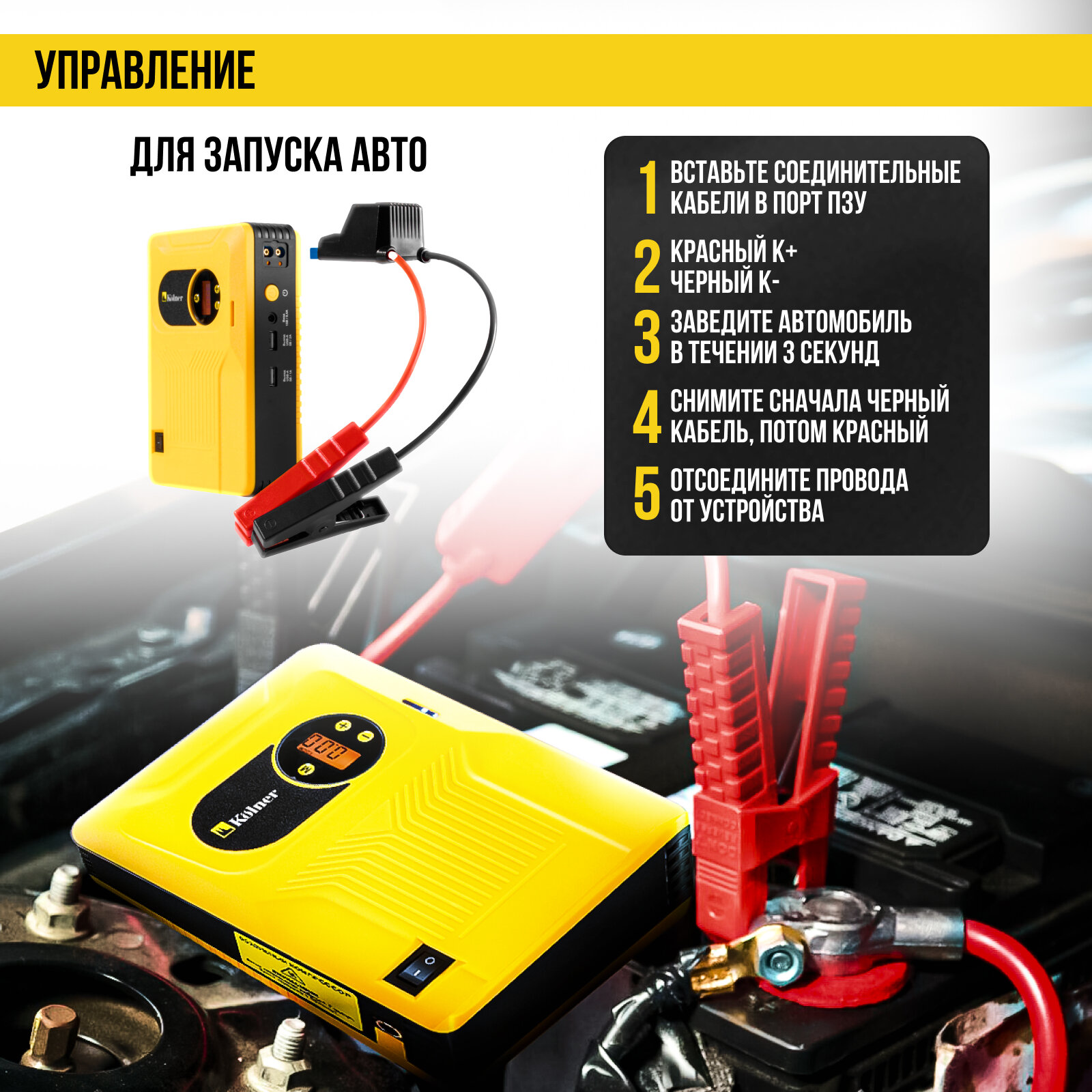 Аккумуляторное пуско-зарядное устройство Kolner KBJS 700/18AC, 8000 мАч, 12В информация: