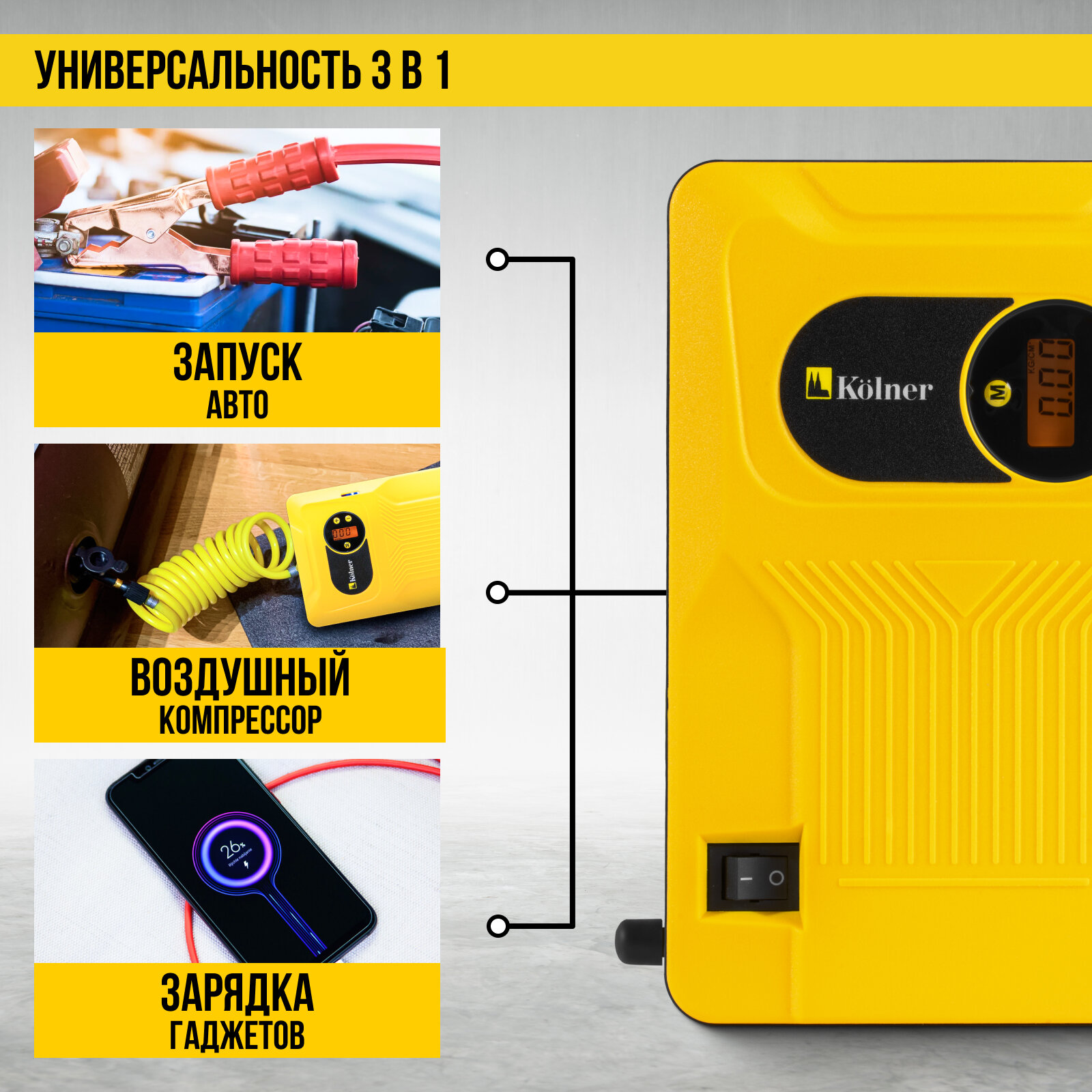 10 цен на Аккумуляторное пуско-зарядное устройство Kolner KBJS 700/18AC, 8000 мАч, 12В