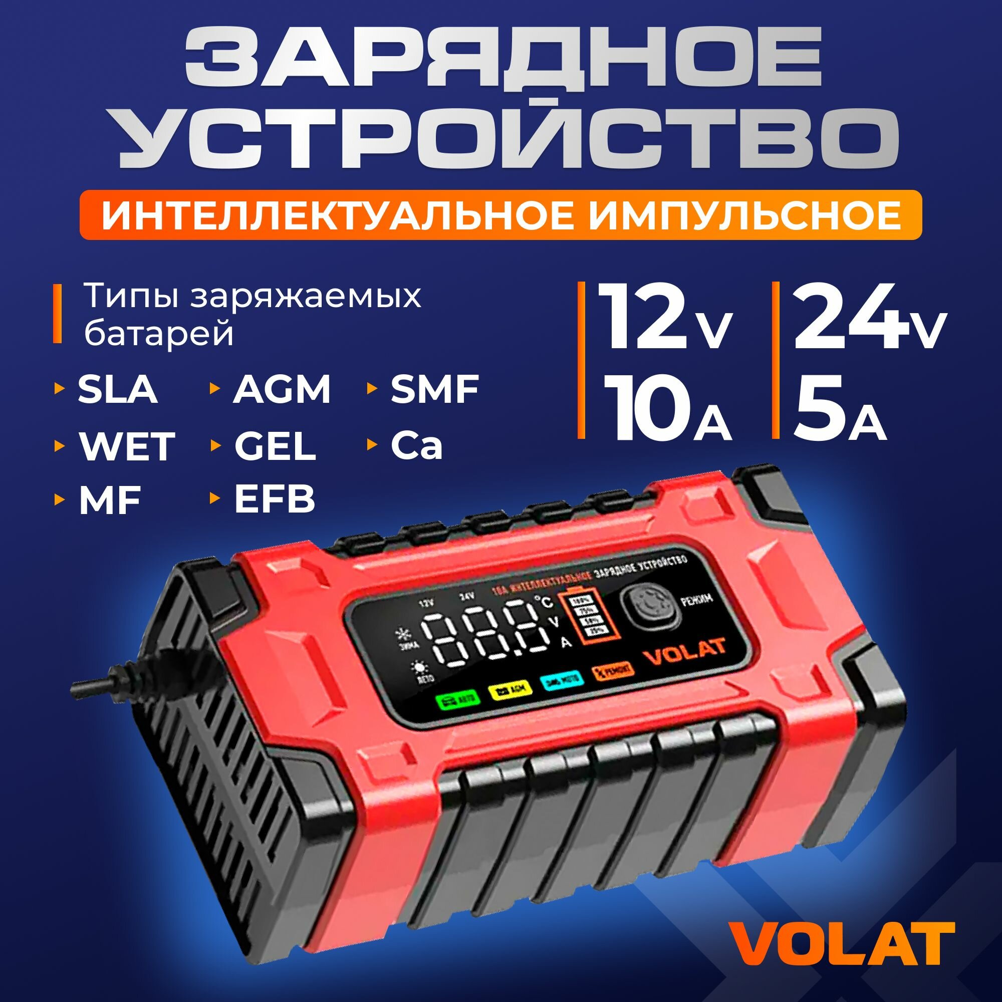 10 цен на Зарядное устройство VOLAT VT-BC122410E 12/24V 10A (AGM, GEL, WET)